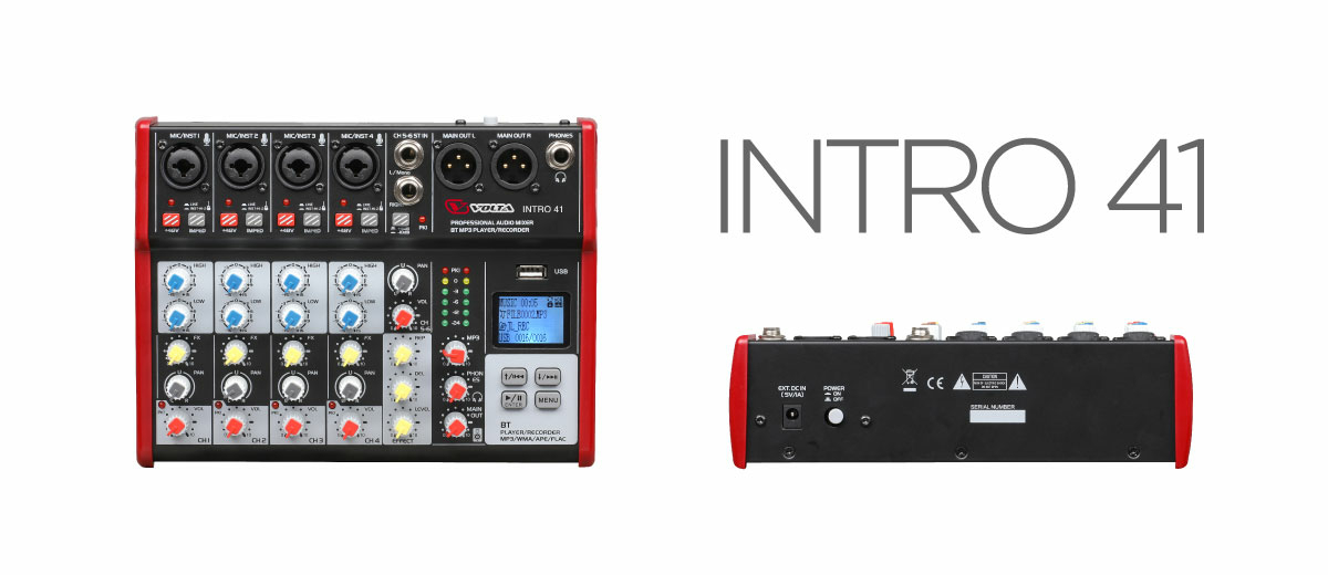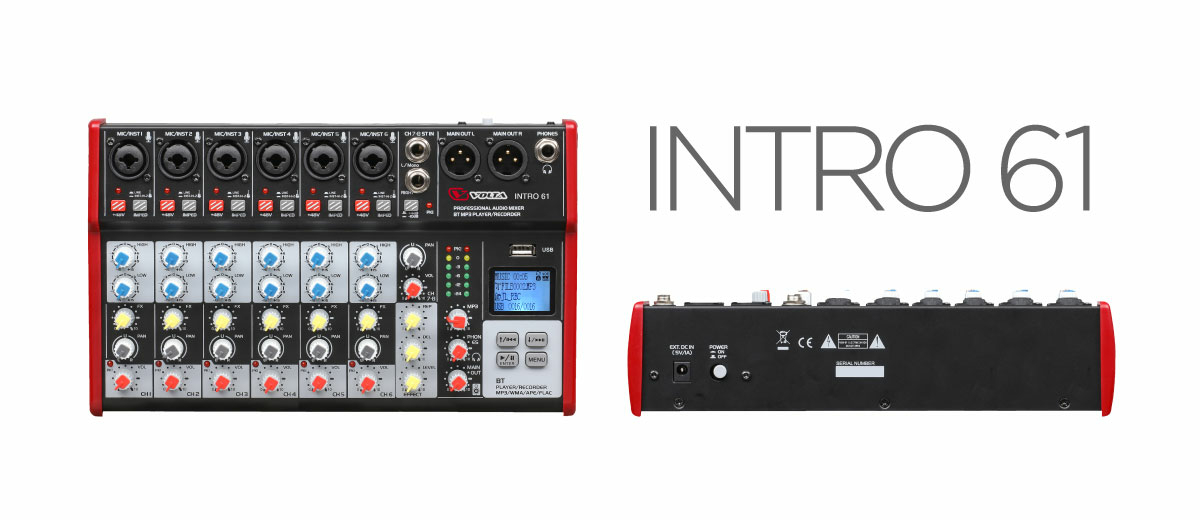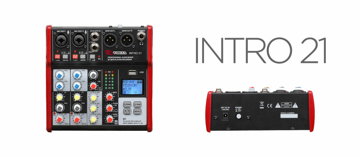 С первого взгляда INTRO напоминает современный стильный гаджет – яркий эмоциональный дизайн, большой экран медиаплеера, смелая цветовая гамма, интуитивно понятное управление. Но не стоит расценивать INTRO как игрушку для пионеров (в хорошем смысле слова). Это самый настоящий микшер, в схемотехнике которого применяются технические решения и компонентная база профессиональных моделей, что позволяет беспроблемно решать все основные задачи по микшированию и обработке аудиосигнала. Кроме того, микшер оснащён процессором эффектов и очень мощным аудиоплеером, который способен записывать и воспроизводить звуковые файлы всех современных форматов, включая FLAC и APE. На радость любителям гаджетов микшер оснащён и Bluetooth-приёмником.
