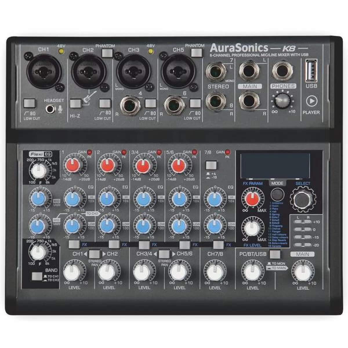 AuraSonics K8 8-канальный микшерный пульт, DSP, MP3, Bluetooth