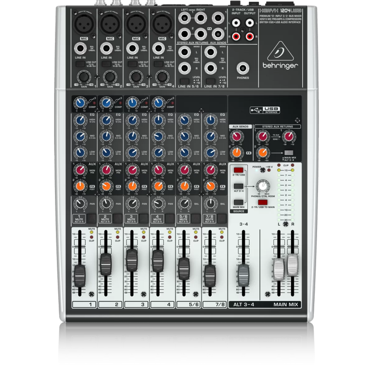 BehringerBehringer 1204USB – 12-канальный микшер, который лучше всего подходит для организации домашней звукозаписывающей студии – скромной по размерам, но не по возможностям.