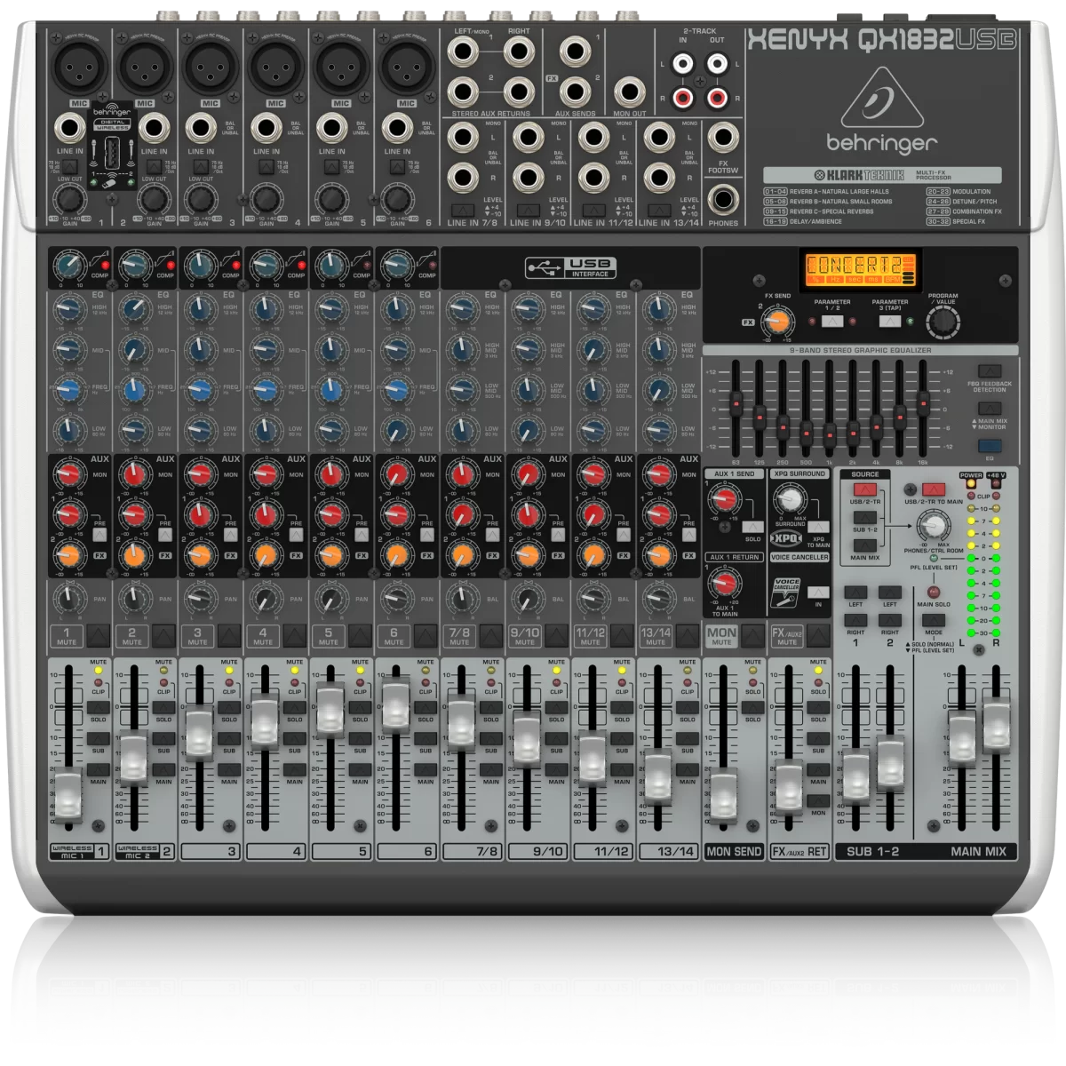 Behringer XENYX QX1832USB – Это профессиональный студийный 18-канальный аналоговый микшер с малошумящими микрофонными предусилителями XENYX.