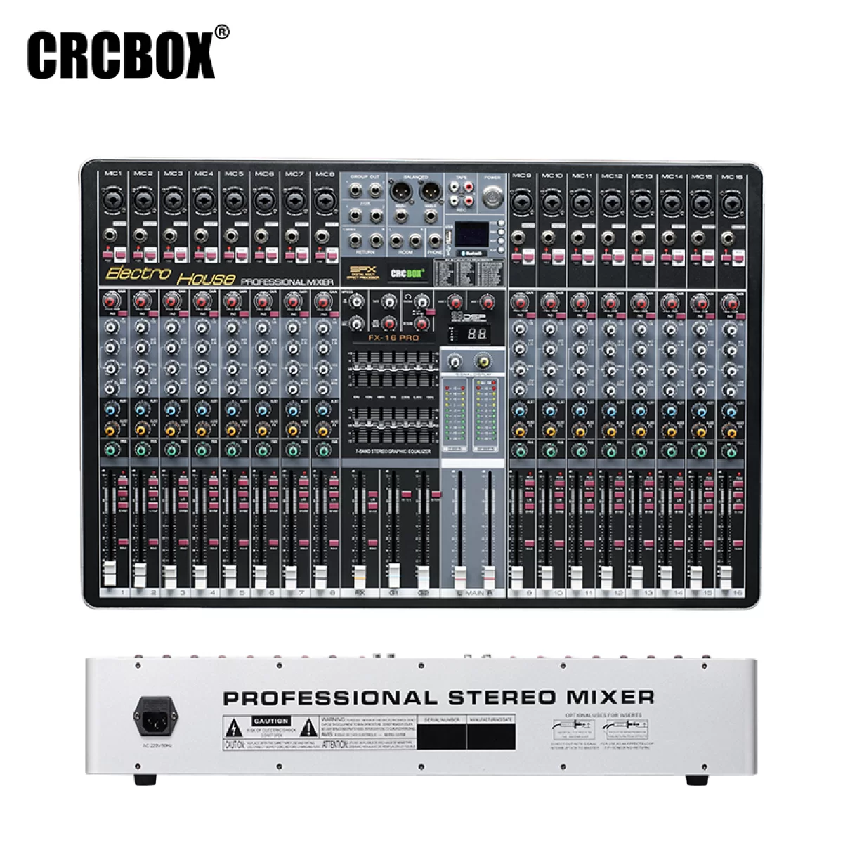 CRCBOX FX-16 Pro 16-канальный микшерный пульт, MP3, Bluetooth, FX