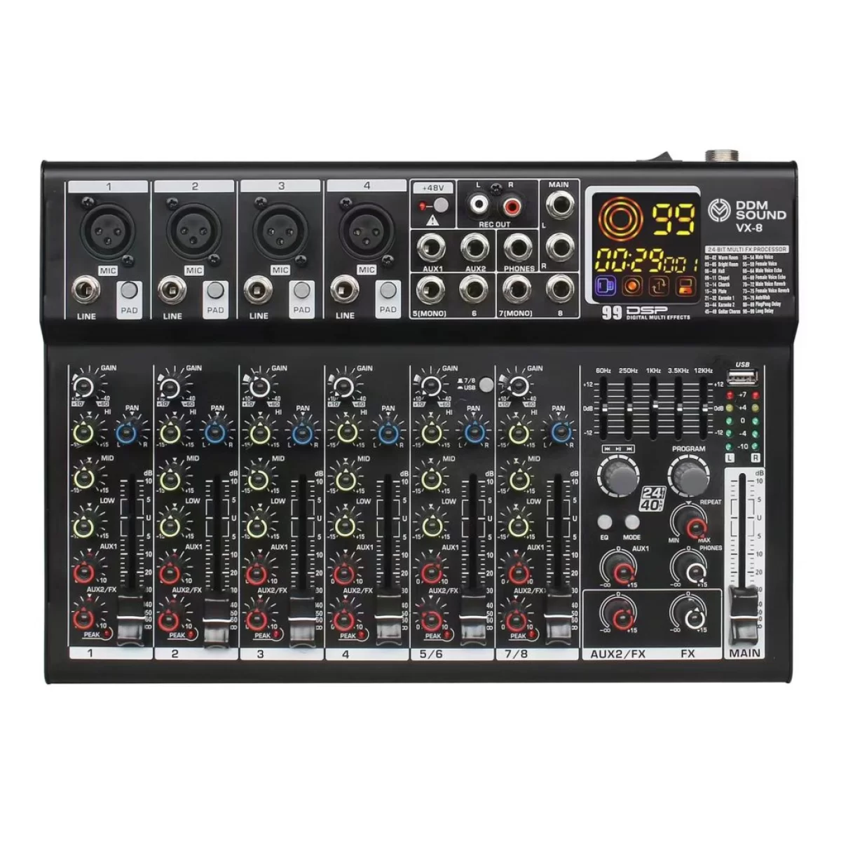 DDM Sound VX-8 8-канальный микшерный пульт, FX, MP3, Bluetooth