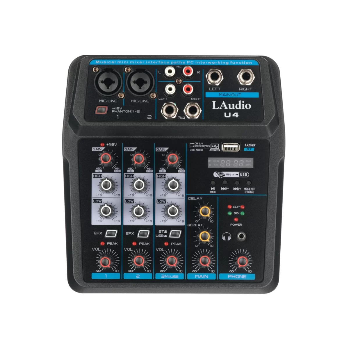 LAudio U4 4-канальный микшер, MP3, Bluetooth