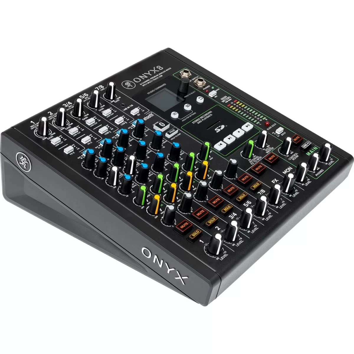 Младшей моделью серии является Onyx8, имеющий 4 фирменных предусилителя Onyx с низким уровнем шума и усилением до 60 дБ. Для управления предусмотрены 45 регуляторов, 38 кнопок и небольшой дисплей. Новинка имеет 2 моно и 2 стерео канала, каждый из которых укомплектован трехполосным эквалайзером Perkin British Style, основанным на модулях использовавшихся в британских консолях 70-х годов, НЧ фильтром, регуляторами усиления / громкости / панорамы, кнопками EQ / Mute / Solo и регуляторами AUX Mon / Fx.