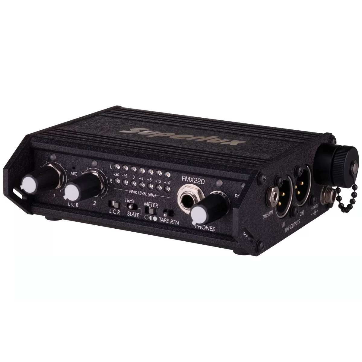 SuperluxSuperlux FMX22D — двухканальный микрофонный микшер студийного класса, предназначенный для внестудийного микширования для видео, кино, телевещания или профессиональной записи.
