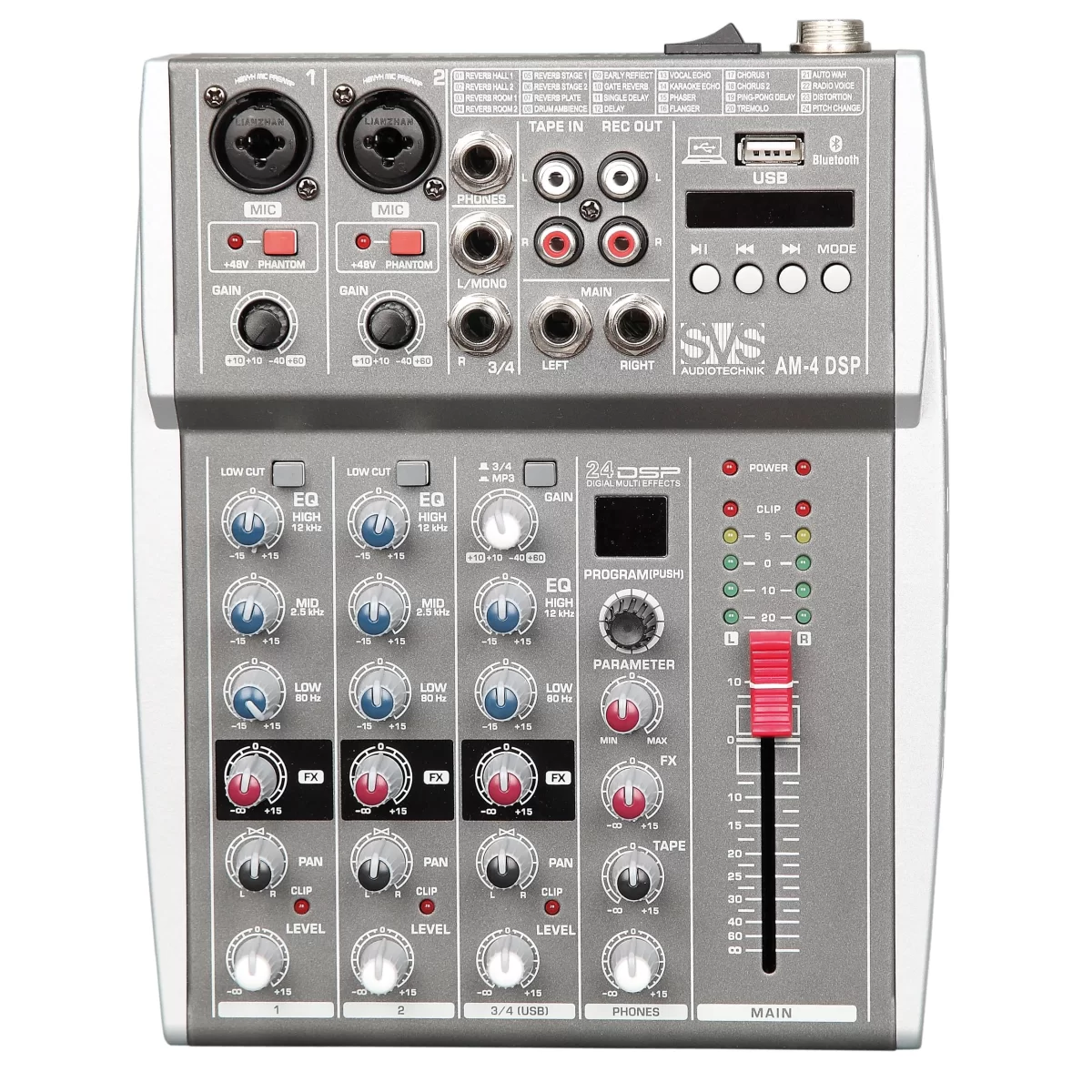 SVS AudiotechnikSVS Audiotechnik AM-4 DSP - Микшерный пульт аналоговый, 4-канальный, 24 DSP эффекта, USB интерфейс.