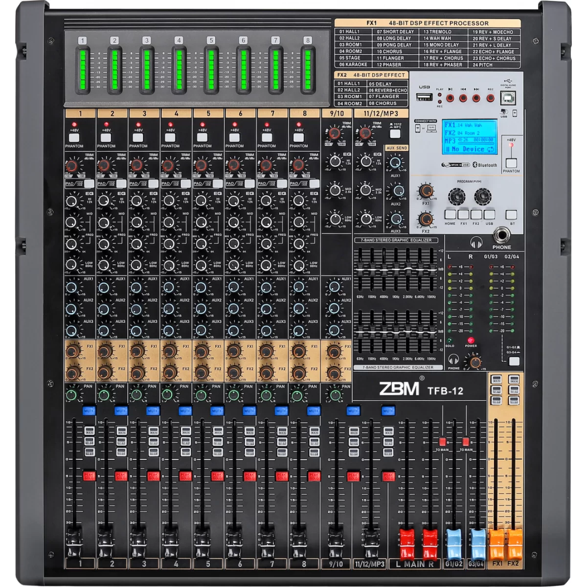 ZBM TFB-12 12-канальный аналоговый микшер, FX, MP3, Bluetooth