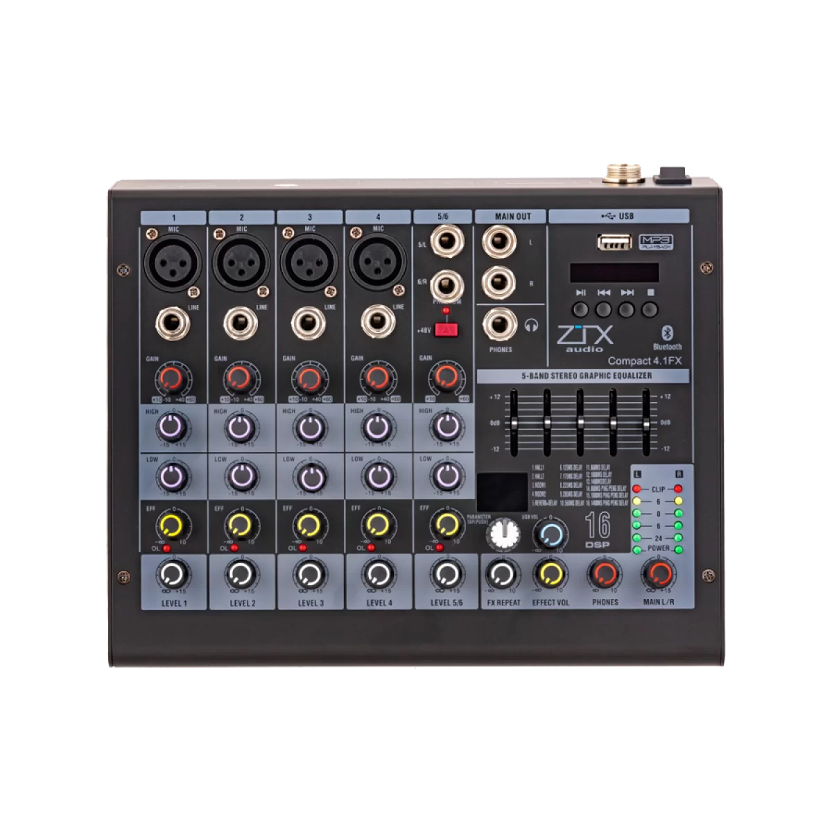 ZTX audio Compact 4.1Fx 6-канальный микшерный пульт, FX, MP3, Bluetooth