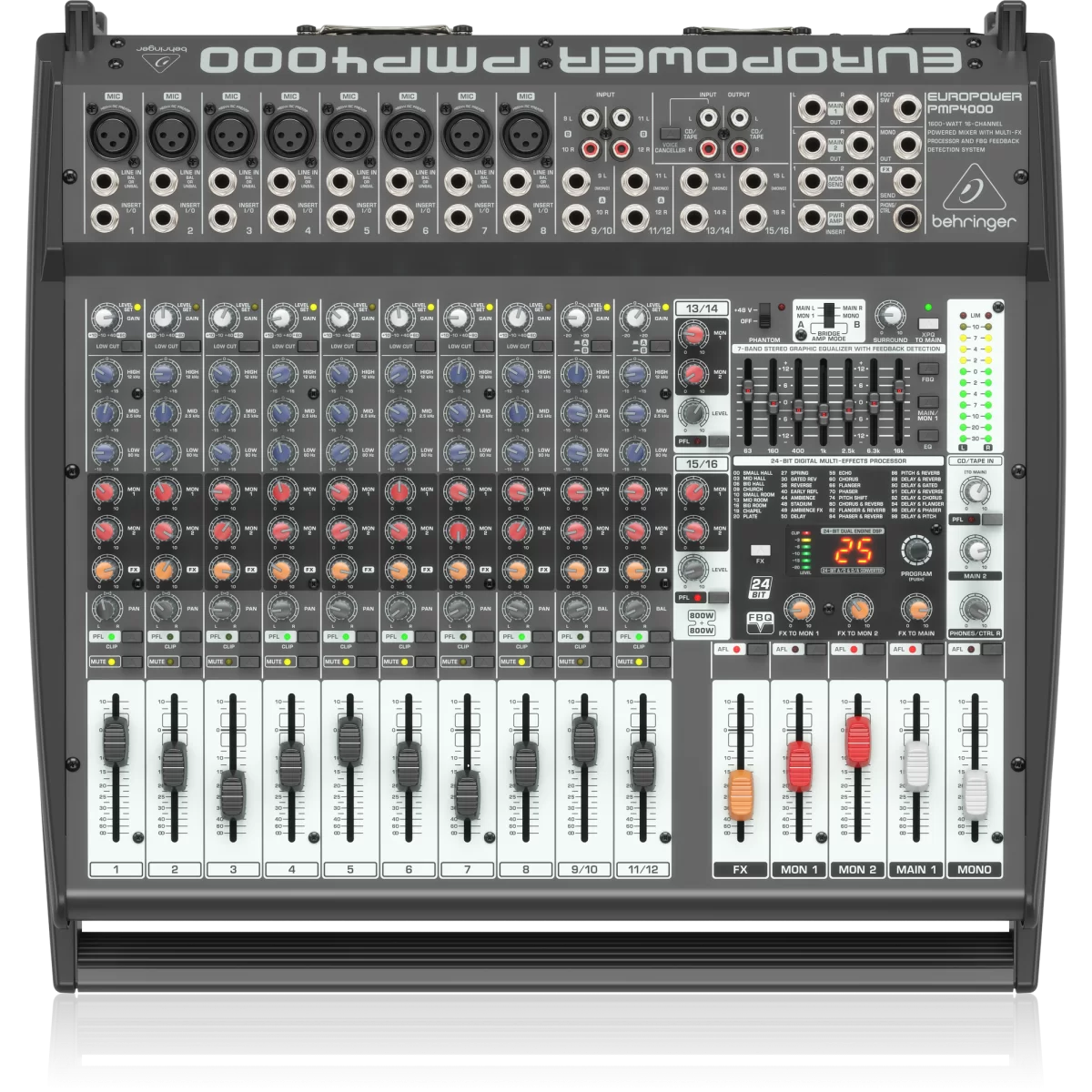 Behringer PMP4000 16-канальный активный микшер, 2x800 Вт.