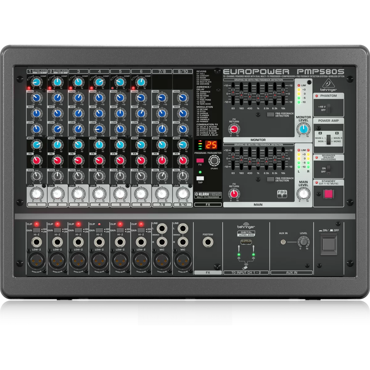 Компания KLARK TEKNIK признанная во всем мире за их процессоры, обеспечила РМР серию FX процессором, который характеризуется лучше звучащими студийного класса пресетами в индустрии.