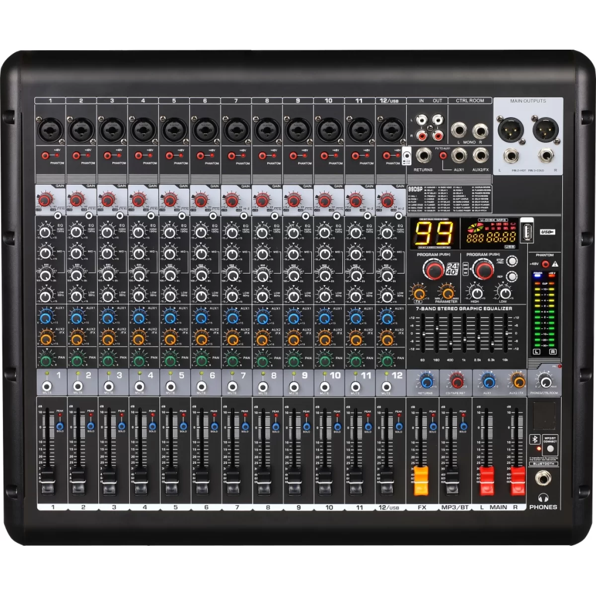 LAudio AG-12PB Активный микшерный пульт, 12 каналов, 2х600 Вт., FX, MP3, Bluetooth