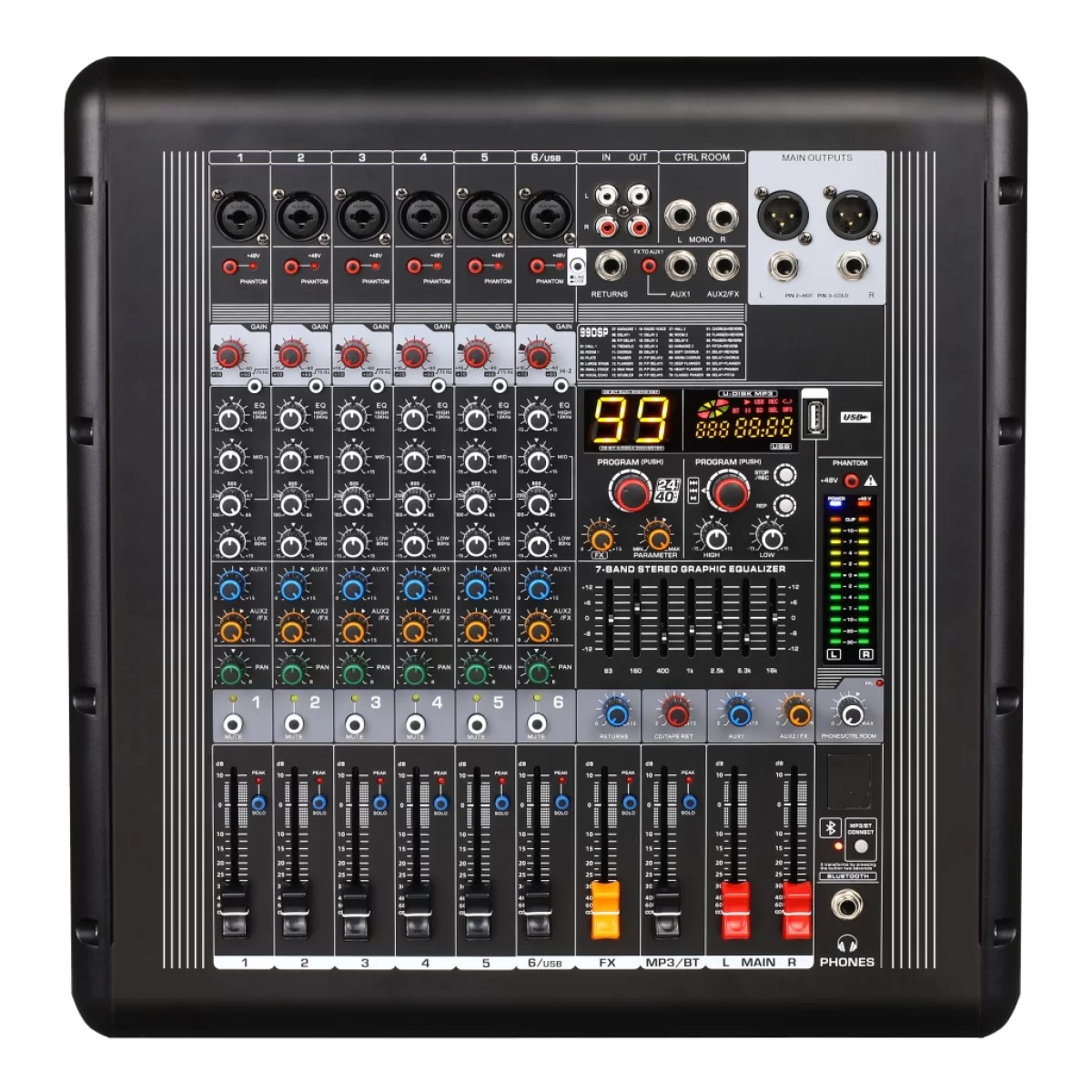 LAudio AG-6P Активный микшерный пульт, 6 каналов, 2х300 Вт., FX, MP3, Bluetooth