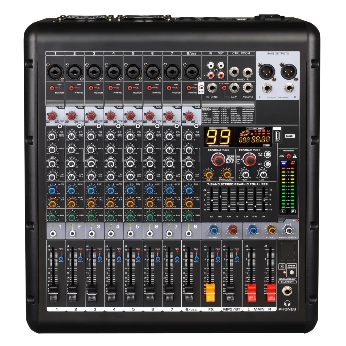LAudio AG-8P Активный микшерный пульт, 8 каналов, 2х300 Вт., FX, MP3, Bluetooth