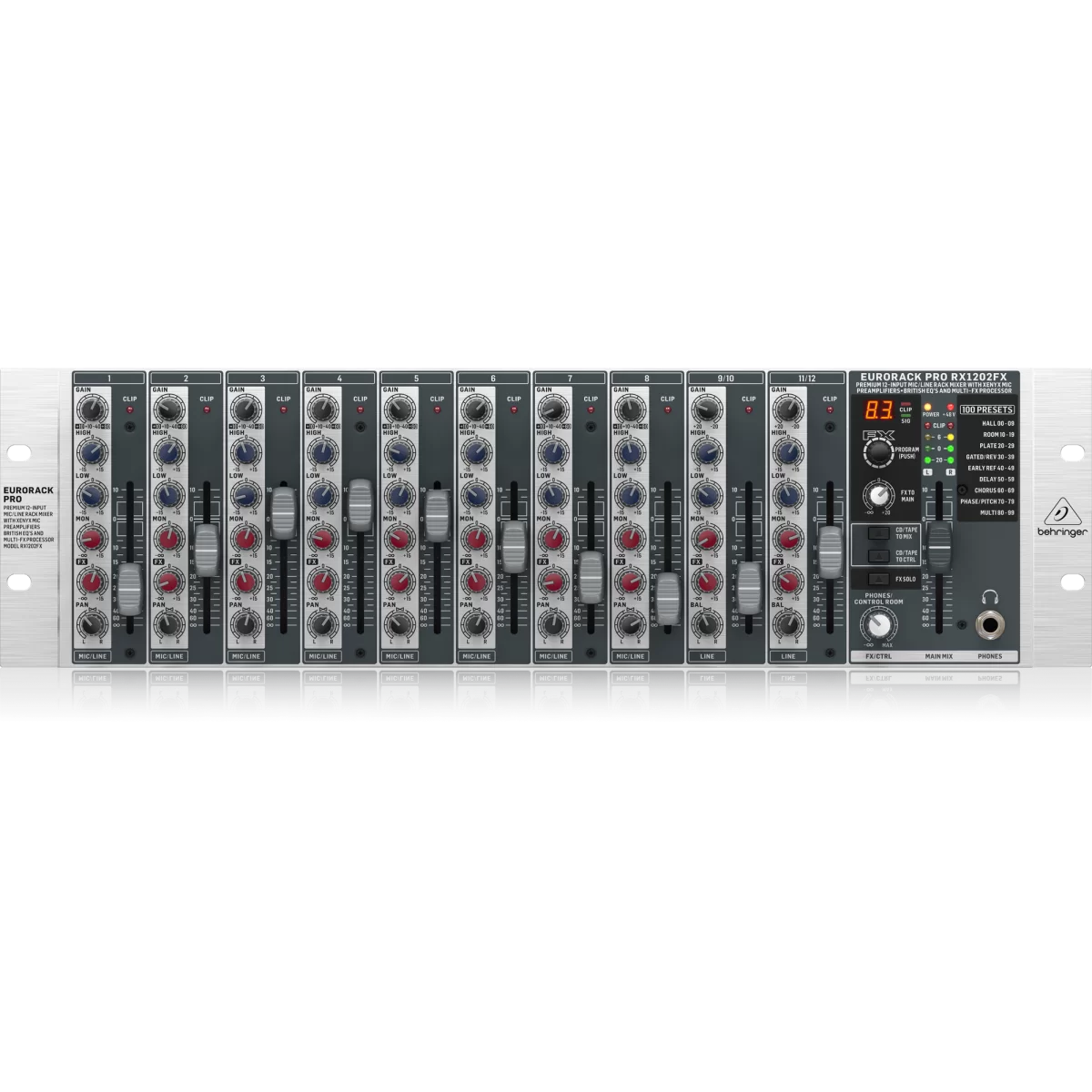 Behringer EURORACK PRO RX1202FX – Это профессиональный 12-канальный линейный малошумящий микшер, выполненный в рэковом формате, высота – 3U.
