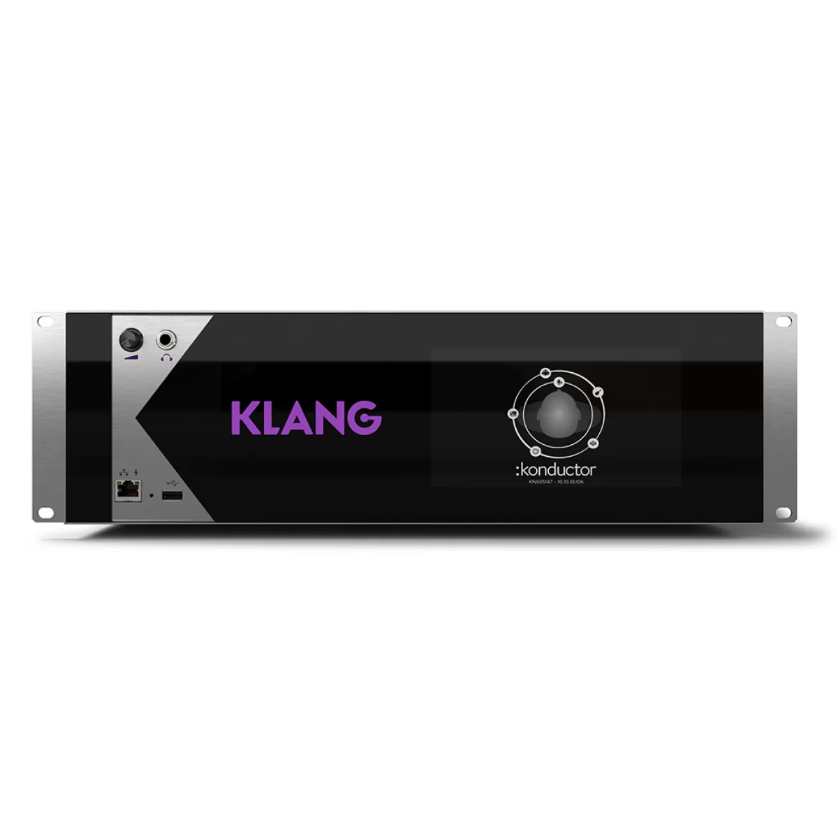 Порт на передней панели девайса позволяет подключить любые мониторные наушники или низкоомные ушные мониторы напрямую, ведь в KLANG:konductor усилитель для наушников студийного класса, такой же, как в KLANG:quelle. Рядом находится 7-дюймовый цветной сенсорный дисплей, с которого можно управлять миксом, настройкой звука, маршрутизацией и выходными уровнями громкости. Ethernet-порт на передней панели устройства позволяет напрямую подключить KLANG:kontroller или KLANG:quelle, а наличие резервного блока питания обеспечивают максимальную надёжность.