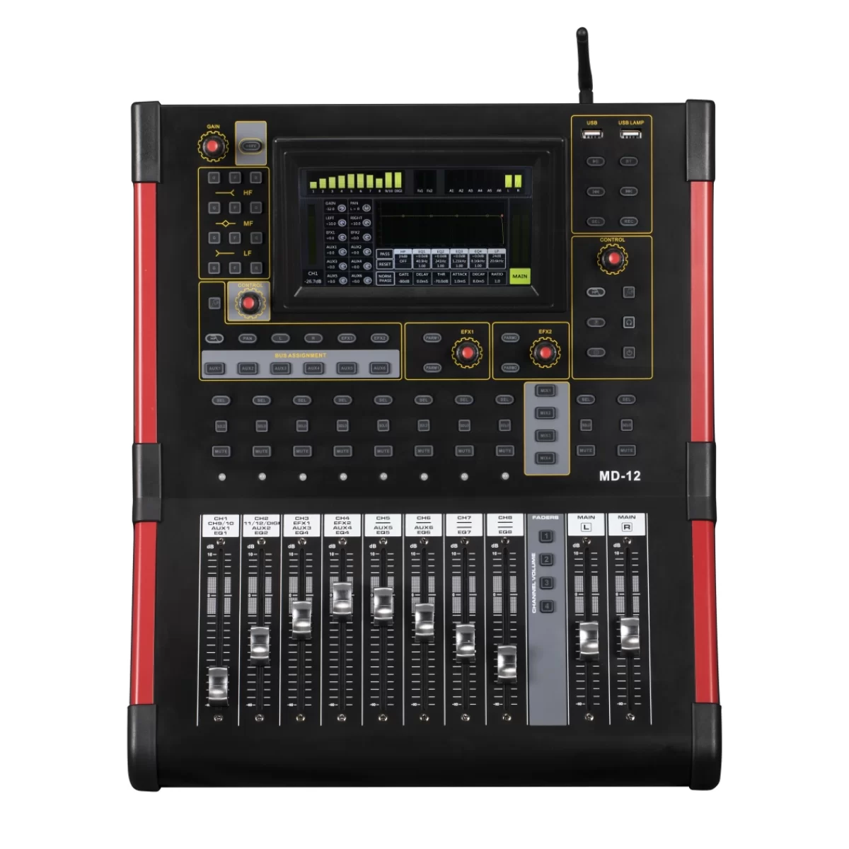 12 аналоговых входов, 8 каналов цифрового усиления, плавная регулировка усиления с шагом 0,3 дБ, прохождение сигнала через высокопроизводительный 24-битный аналого-цифровой преобразователь с низкой задержкой, минимальные искажения и сверхнизкие фоновые шумы, а также многофункциональная регулировка параметров. Хорошая согласованность, обеспечиваемая цифровым усилением, позволяет эффективно предотвращать неправильную работу микшера.