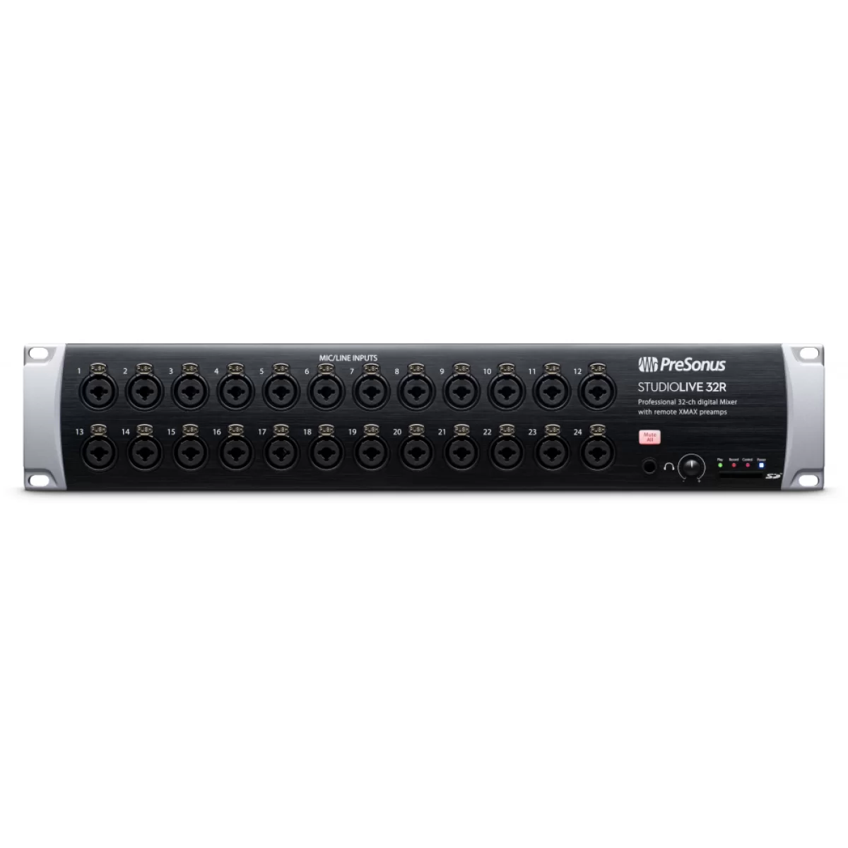 PreSonus StudioLive 32R – Это профессиональный цифровой микшерный пульт, способный работать в трех режимах: как автономный микшер, как дополнительный микшер для консоли StudioLive Series III или как стэйджбокс. Данная модель является самой старшей в линейке StudioLive и предлагает максимальное количество входов и выходов. Встроенные АЦП и ЦАП имеют 24-битную разрядность с частотой дискретизации 48 кГц и широкий динамический диапазон 115 дБ.
