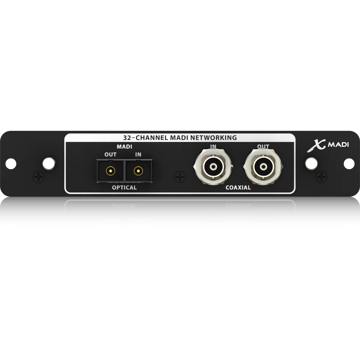 Модуль добавляет к микшеру 32-канальный двунаправленный аудиоинтерфейс с использованием AES10-соединения по протоколу MADI. С MADI-устройствами модуль может быть соединен по оптоволокну посредством разъемов типа SC. Поддерживается передача данных на расстоянии до 2 км.