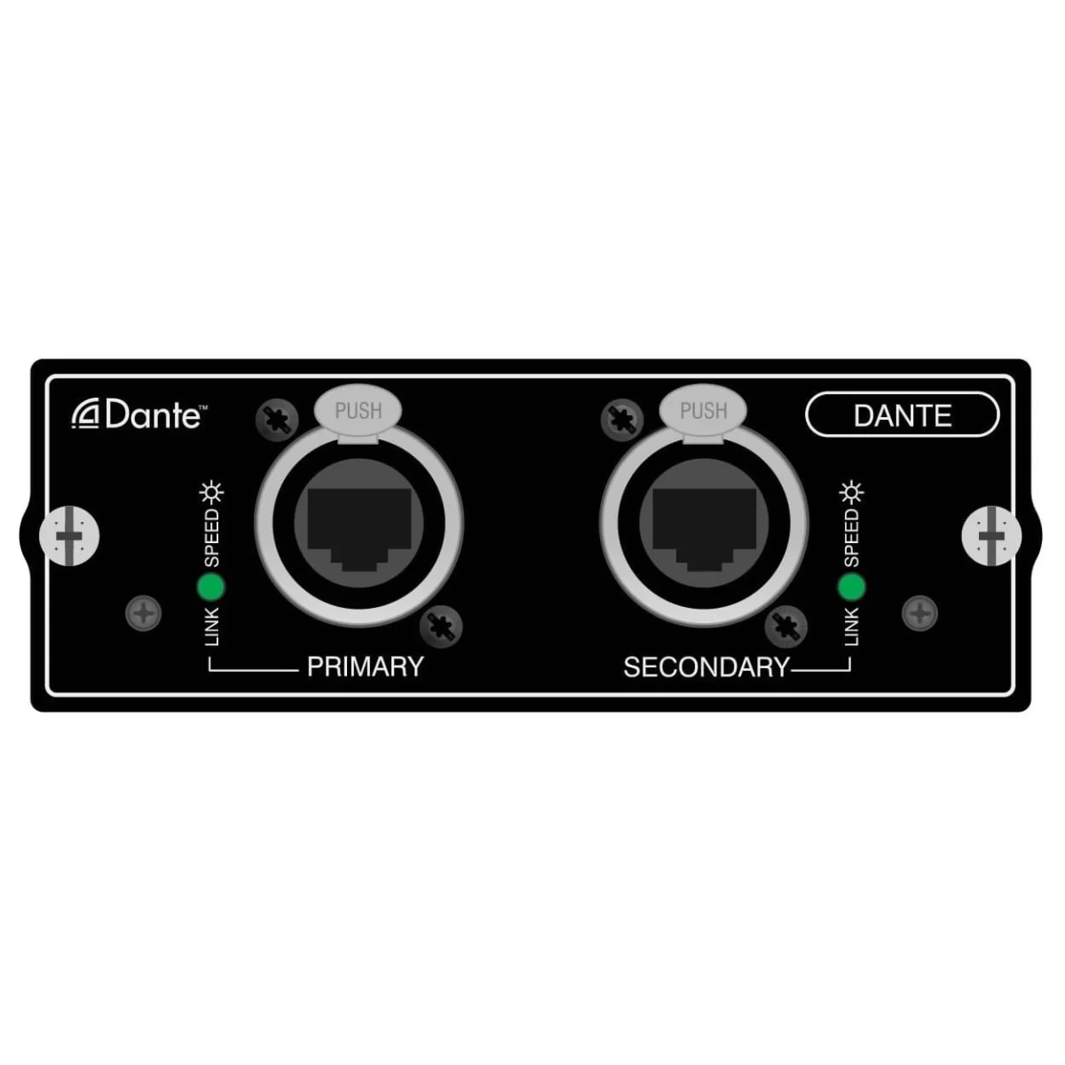 - Аудиоинтерфейс, подключающийся к сетям Dante посредством стандартного Ethernet-кабеля