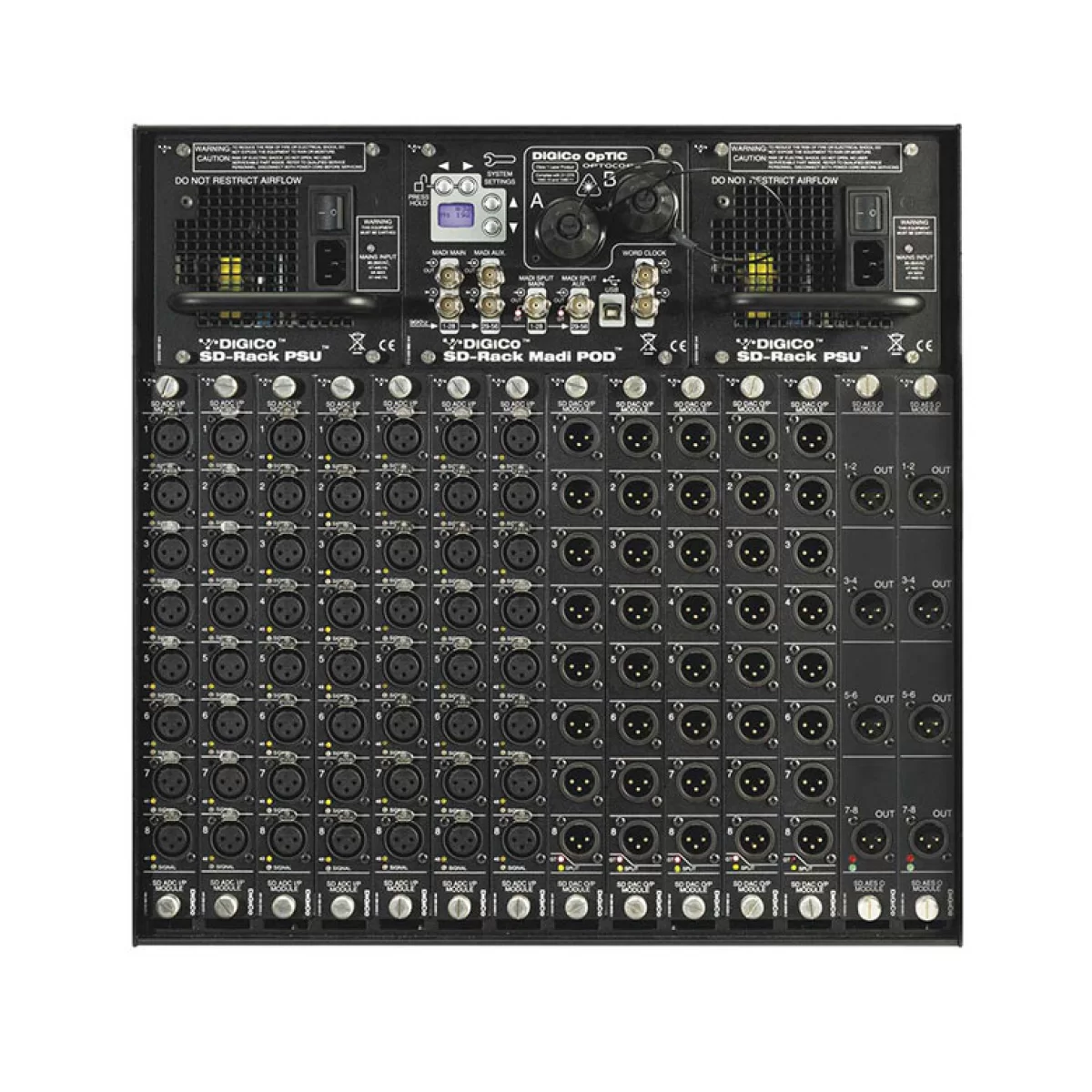 Эволюционное развитие DiGiRack, при той же емкости входов/выходов (56/56) поддерживает частоту дискретизации 192 кГц. Соответственно, имеются SD-версии интерфейсных карт, работающих на частоте 192 кГц. Для передачи большого объема аудиоинформации SD-Rack штатно оснащен оптическим интерфейсом.