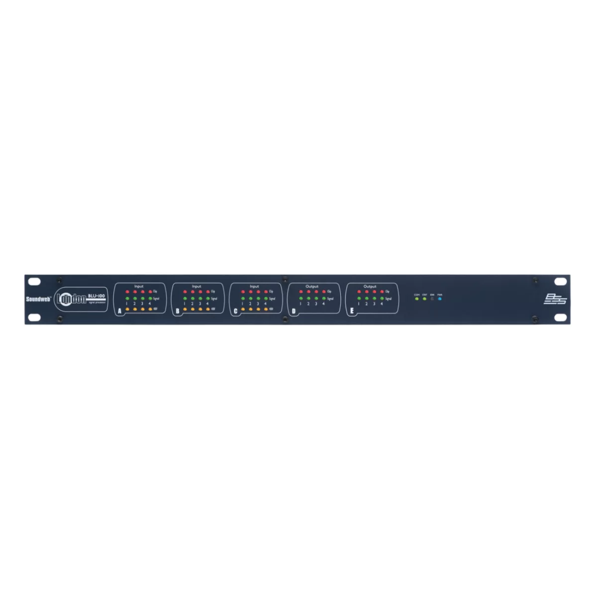 BSS BLU-100 полностью совместим со всем семейством Soundweb London. Аналоговые входы обеспечивают полноценную настройку программного обеспечения и пошаговое усиление с 6 дБ до 48 дБ на канал наряду фантомном питанием каждого канала.