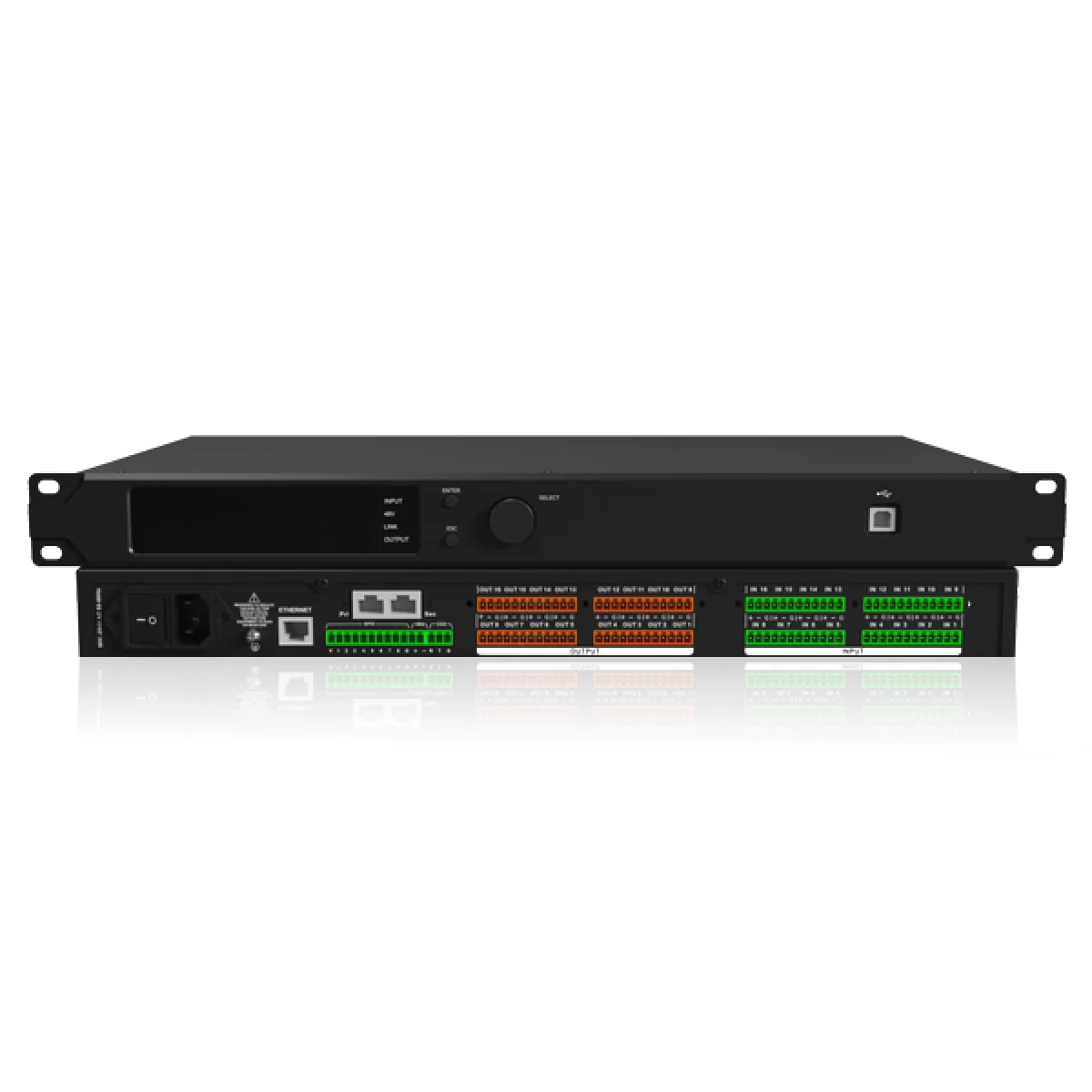 Описание подготовлено командой сайта samid.ruDP1686 оснащен полезными голосовыми алгоритмами AFC, AEC, ANC и функциями DSP, включая автоматическое микширование, матричный микшер, шумоподавление, кроссовер, параметрический эквалайзер, задержку, компрессор, ограничитель и т. д. Поддерживает 4x4/16x16 каналов сетевого аудио Dante, подходит для профессиональных приложений.