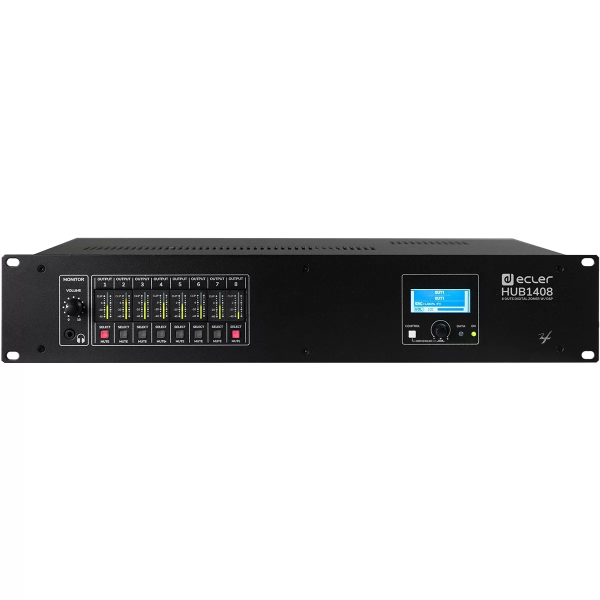 EclerEcler HUB1408 – Цифровая матрица аудиосигналов, DSP-аудиопроцессор серии HUB с фиксированной архитектурой, 14х8 входов/выходов.