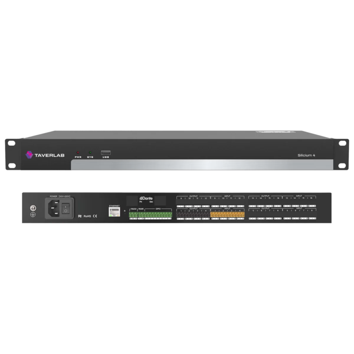 Аудиопроцессор TaverLab Silicium 4 представляет собой систему обработки и управления звуком. Он использует передовую технологию обработки DSP, имеет новые функции автоматического микширования, устранения обратной связи и т.д., направленные на решение различных практических задач в прикладной области. Опциональный модуль Dante обеспечивает высокую пропускную способность, низкую задержку, высокую совместимость и низкую стоимость решения для сетевой передачи звука. Благодаря программной реализации большинства управляющих функций, система имеет простой внешний вид, и настройка устройства сводится к нескольким нажатиям мыши.
