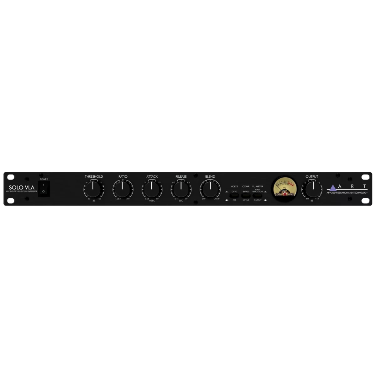 Solo VLA — это рэковый компрессор 1 U с переключаемыми оптическими и полевыми транзисторами для плавной или энергичной динамической обработки. В оптическом режиме используется лампа 12AT7 в сигнальном тракте для дополнительной теплоты. Помимо изменяемых порога, соотношения, атаки и восстановления, он также оснащен регулятором смешивания для параллельной компрессии. Это позволяет добавить полноту и сустейн к сжатому сигналу, сохраняя при этом полный динамический диапазон исходного исполнения.