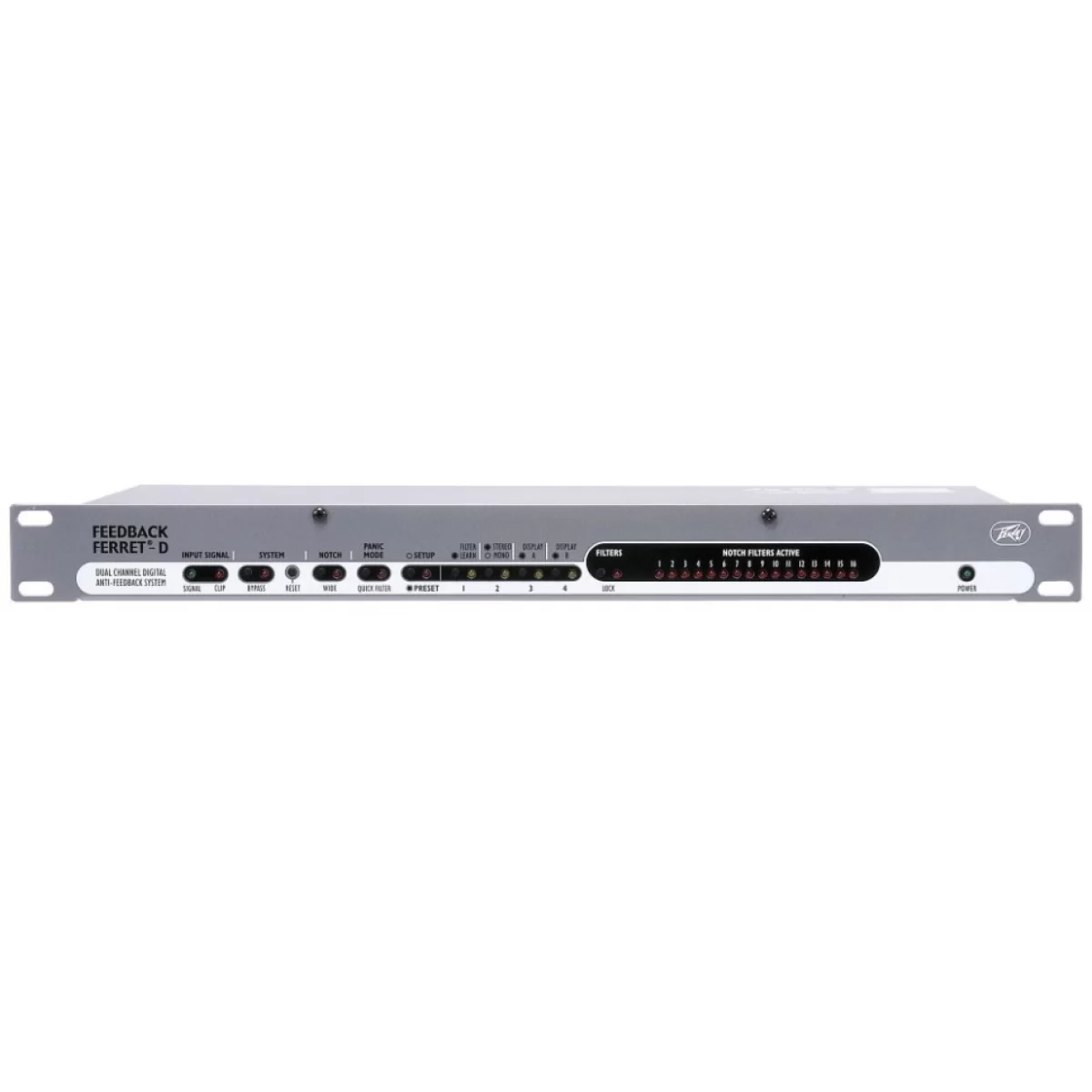 PeaveyPeavey Feedback Ferret D - Подавитель обратной акустической связи, 16 цифровых фильтров, 4 пользовательские настройки, режим Panic, функция Power-up, 1U, разъёмы на балансных XLR и 1/4", встроенный блок питания.