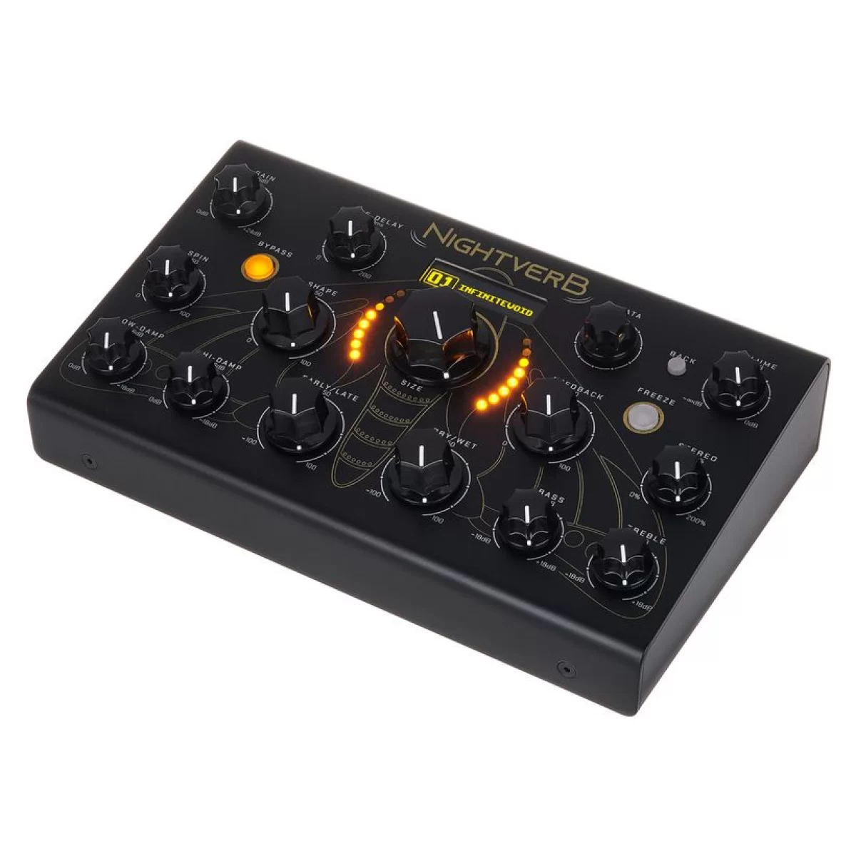 Описание подготовлено командой сайта samid.ruУстройство оснащено 12 параметрами для детальной настройки реверберации, включая Pre-Delay, Size, Shape, Feedback, Stereo Width, Low-Damp, Hi-Damp и Dry/Wet. Все параметры могут быть управляемы через MIDI CC, обеспечивая гибкость в интеграции с другими устройствами. Функция Freeze с хроматической настройкой позволяет удерживать тюнить входящий сигнал через MIDI-клавиатуру. Nightverb имеет 30 заводских пресетов и 70 слотов для пользовательских настроек, которые можно экспортировать через USB. Прочный алюминиевый корпус и компактные размеры делают его удобным для использования в студии и на сцене.