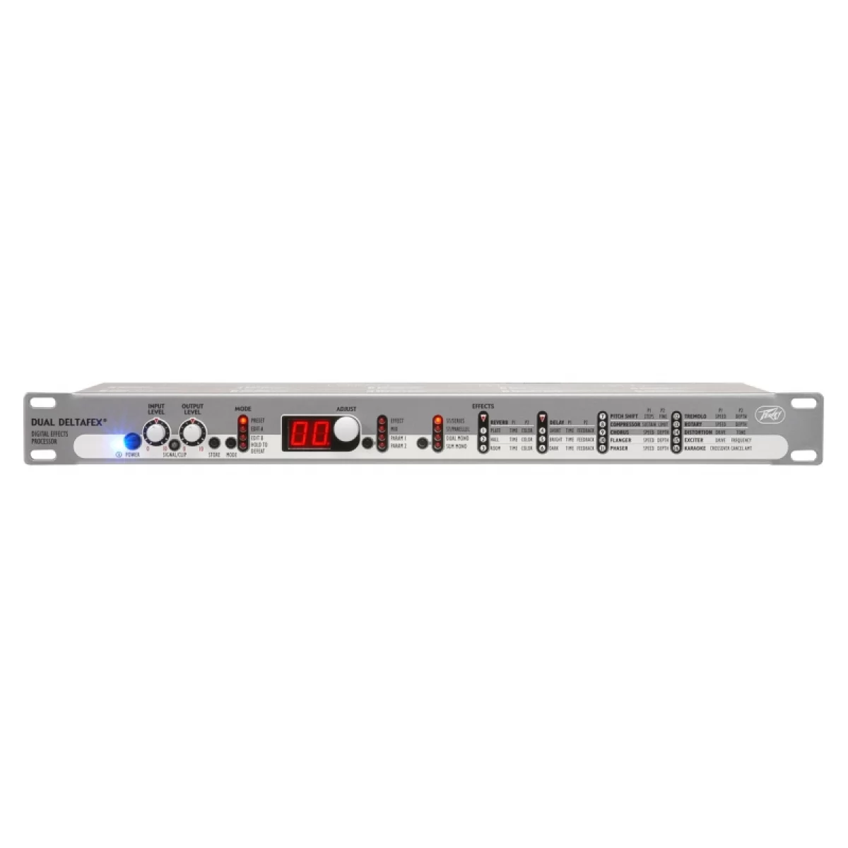 Peavey Dual DeltaFex - Объединяет в одном корпусе два процессора эффектов. Мощная цифровая обработка, в сочетании с разнообразными возможностями подключения в однорэковом корпусе, делает это устройство великолепно приспособленным как для концертов, так и для студийных задач.