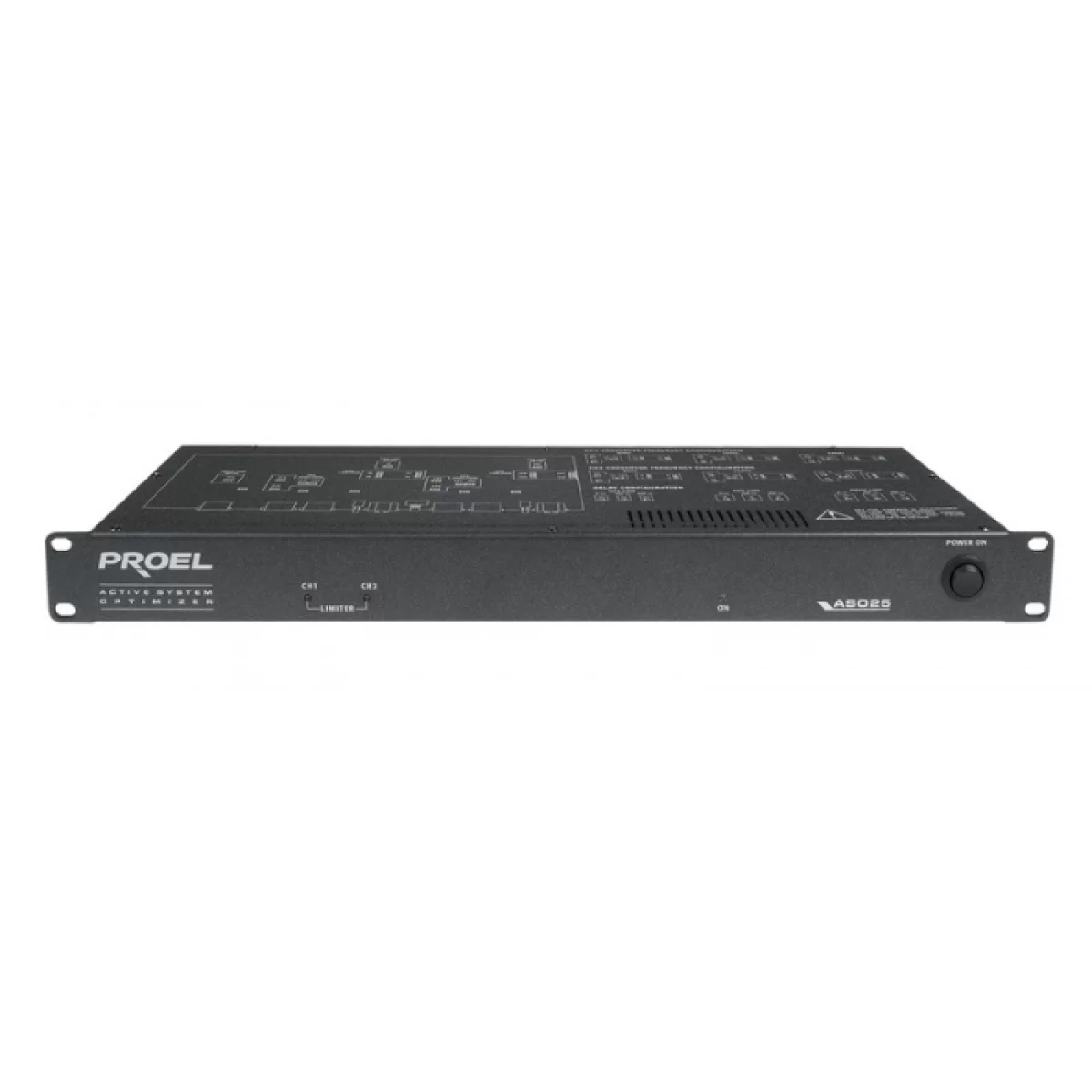 Аналоговый системный оптимизатор ASO25 был разработан PROEL для установки в акустические системы TFLV/TFL и TPRMARKII с целью разделения и оптимизации звукового сигнала. ASO25 направляет сигнал отдельно на секцию усилителей высоких частот и на секцию усилителей низких частот. ASO25 оборудован двумя входными каналами, двумя выходами для ВЧ, двумя выходами НЧ, дополнительным выходом моно для НЧ. Встроенный кроссовер 24/ дБ на октаву типа Linkwitz-Riley с частотой 125 Гц. ASO25 также оснащен фильтром субчастот и регулируемым лимитером. Внутри устройства можно изменять частоту среза (80 Гц, 125 Гц, 160 Гц) и выставлять линии задержки (0, 300µs, 600µs). С соответствующей дополнительной платой (под заказ) можно добавлять персональные параметрические фильтры. Более того, возможна внутренняя конфигурация с применением фильтра 10 кГц.