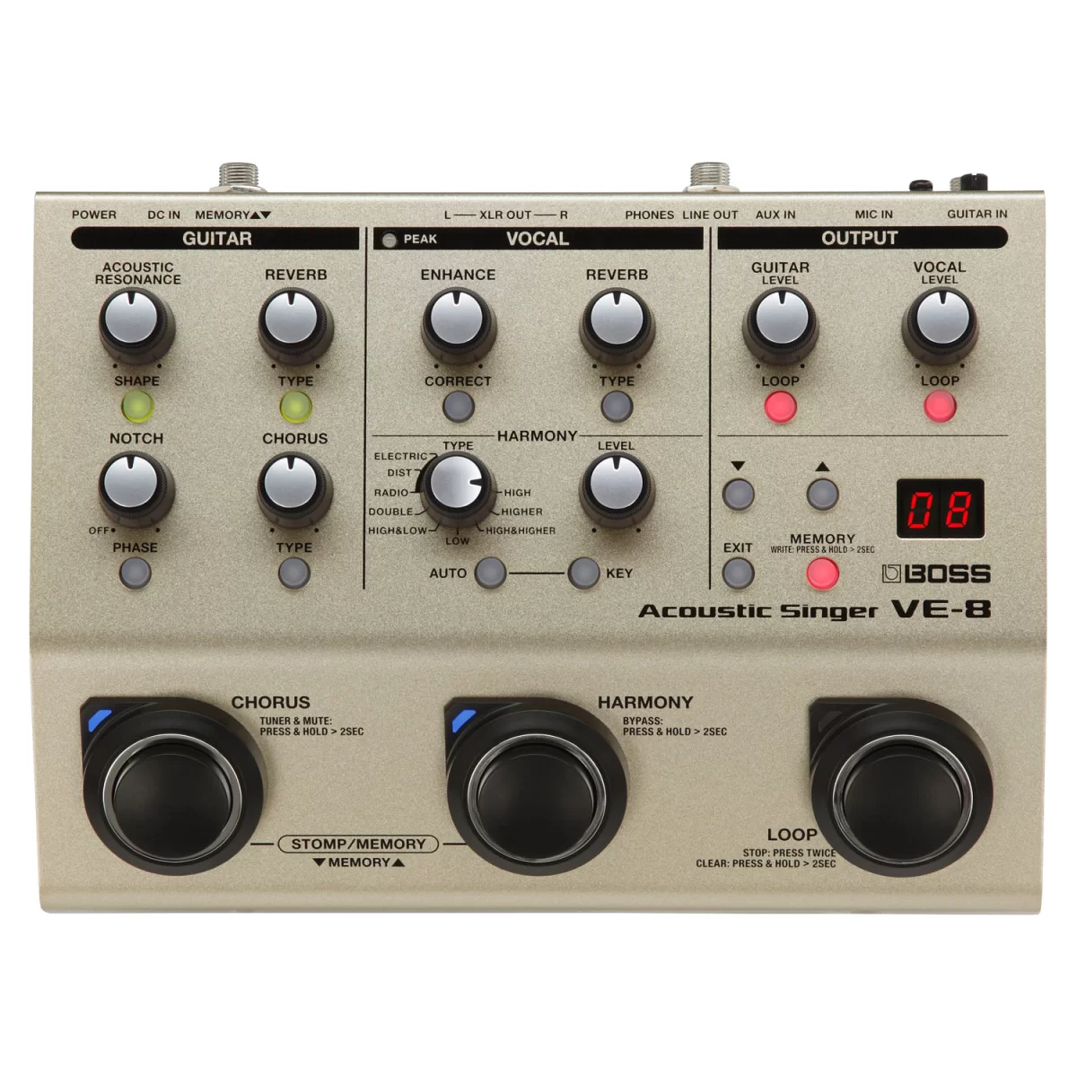 Boss VE-8 является идеальным выбором устройства, если вы поете под гитару и ищете прибор, который откроет новые возможности для исполнения и сможет сделать звук интереснее и богаче. Конечно, данный процессор нельзя назвать абсолютно универсальным, однако со своей специализацией он справляется на самом высоком уровне и способен покрыть все потребности поющих гитаристов.
