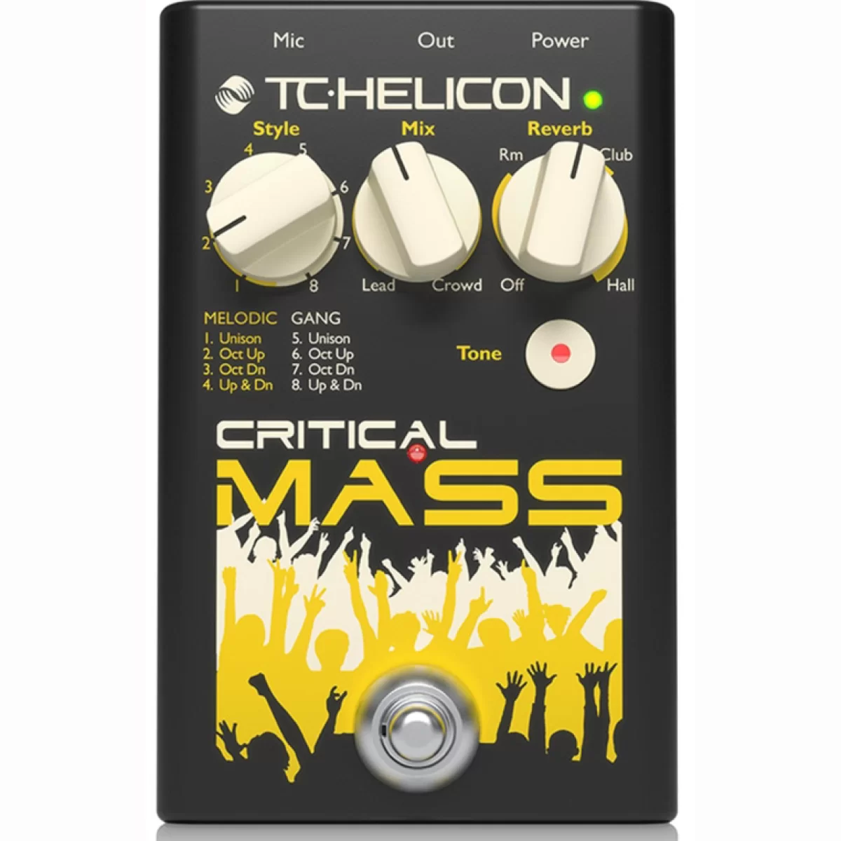 TC Helicon Critical Mass добавляет звук и ощущение группового вокала к вашим выступлениям, и динамически полирует ваш вокальный звук до блеска студийного качества. С поворотом интуитивно понятных элементов управления Style и Mix вы сможете вывести все, от октавы до унисонного вокального аккомпанемента в стилях Melodic и Gang.