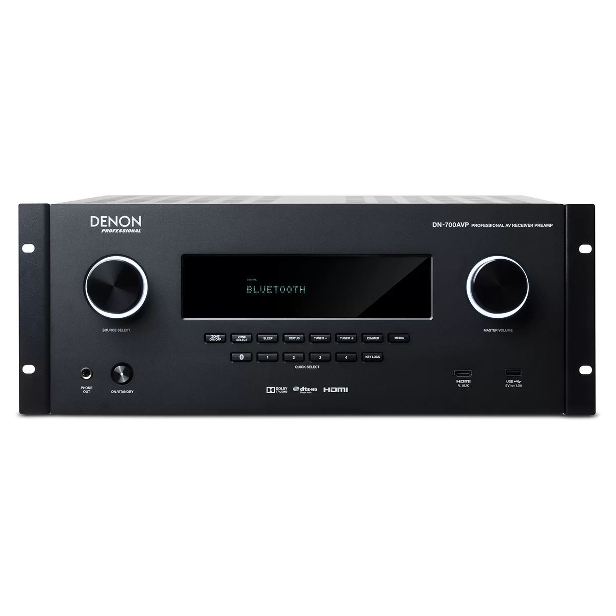 Denon DN-700AVP оснащен декодерами окружающего звука Dolby TrueHD и DTS HD MA, что позволяет прослушивать звуковые дорожки фильмов на BD. Также в AV-процессоре предусмотрен современный сетевой функционал с поддержкой протокола соединения DLNA. Еще одним вариантом подключения к Denon DN-700AVP является встроенный Bluetooth-модуль. В данной модели предусмотрен FM-тюнер с автонастройкой и памятью на 20 фиксированных настроек.
