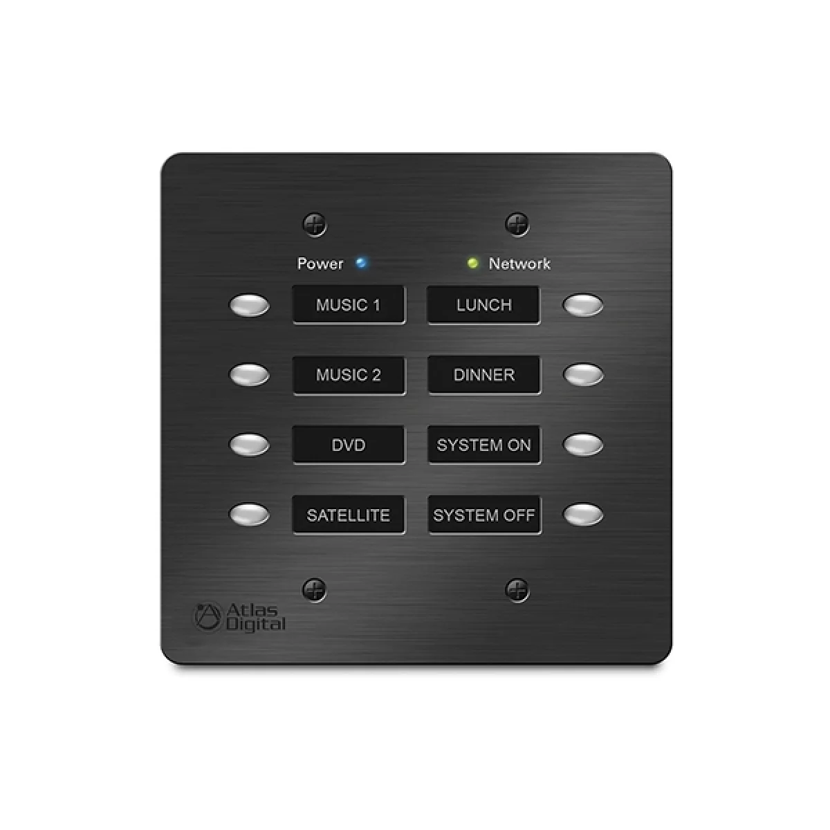 Atlas IEDAtlas IED BBWP-S8B – Встраиваемая настенная панель управления процессорами BlueBridge, предназначенная для управления устройствами в 8 локальных зонах.