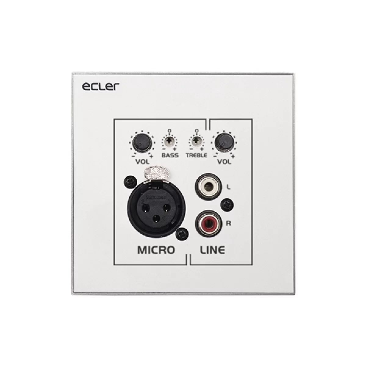 EclerEcler WPaMIX-T – Настенная панель серии WPa, двухканальный микшер линейного стерео (2xRCA) и микрофонного (XLR) сигналов, имеется двухполосный эквалайзер.
