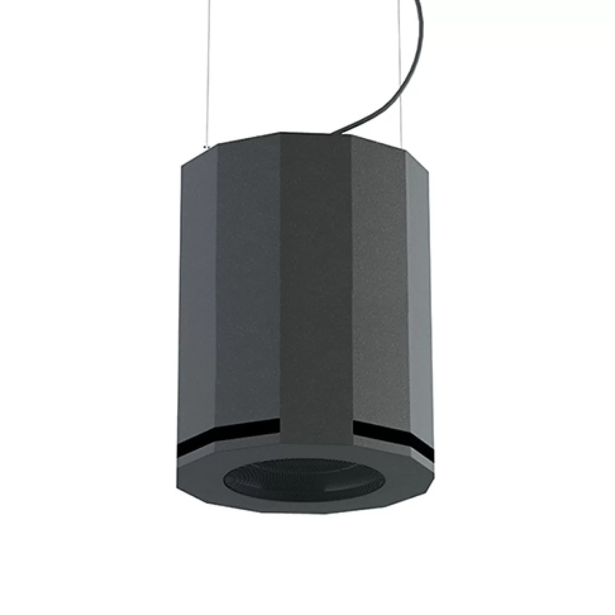 Для подвеса сабвуфера на верхней крышке предусмотрены два кольца за которые должен крепиться трос. Комплект для подвеса не входит в стандартную комплектацию, но может быть приобретен опционально – CVGAUDIO SM-SUB. Цвет корпуса сабвуфера черный, покрытие – очень прочный структурированный полиуретан (полимочевина). CVGAUDIO SUBone model DH-8/BL/CR имеет современный, аккуратный корпус размером – h=492mm/d=380mm. Корпус выполнен в виде трубы, имеющей 12 граней. Динамик скрыт декоративной защитной cеткой окрашенной в цвет корпуса. Опционально, по отдельному запросу возможны варианты покраски корпуса в цвет отличный от штатного.