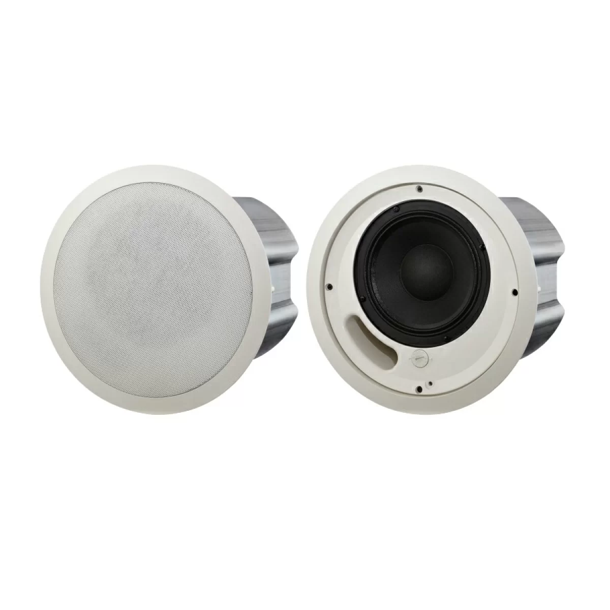 Перфорированная решетка полностью покрыта цинком и отделана белой полуглянцевой эмалью с порошковым напылением. Экран и рамка выполнены из огнестойкого пластика ABS. Задняя стенка корпуса изготовлена из стали большой толщины с цинковым покрытием. Задняя стенка корпуса обита поглощающим материалом из стекловолокна и обеспечивает оптимальный внутренний уровень громкости для повышенной эффективности передачи низких частот. Задняя крышка с возможностью фиксации монтажной коробки обеспечивает доступ к 4-контактной клеммной колодке, допускающей прямое подключение к громкоговорителю с помощью провода диаметром до 12 AWG, а также предоставляет сквозное подключение дополнительных громкоговорителей. Для специальных установок в составе систем речевого аварийного оповещения используется керамическая клеммная колодка, фиксируемая на задней стенке громкоговорителя под задней крышкой разъема. Задняя крышка согласно стандарту EN54 используется для создания уплотнения, защищающего потолочный громкоговоритель от влаги и посторонних частиц при правильной установке.