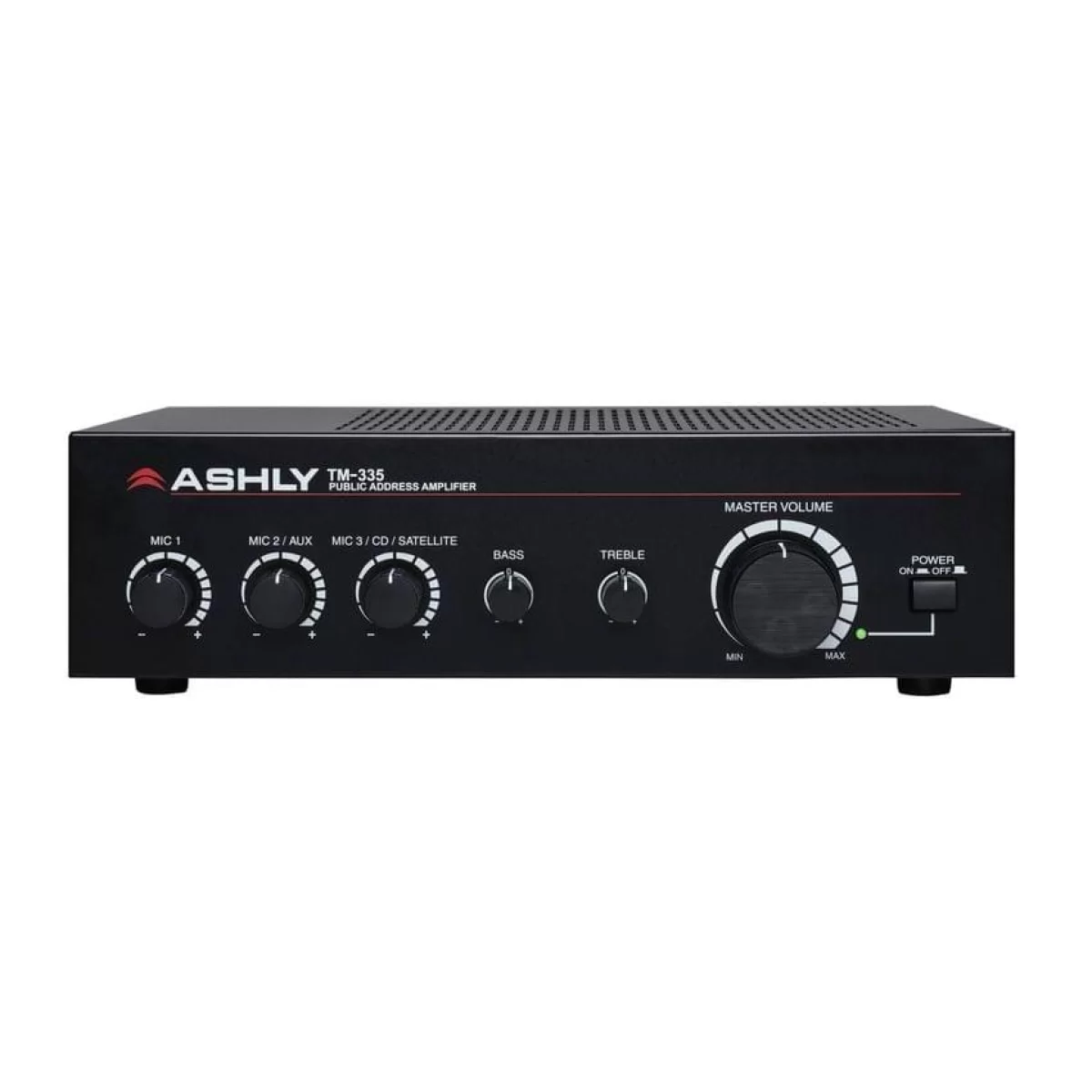 Ashly TM-335 - Компактный 3х канальный микшер-усилитель 35 ватт/4ом, 35Вт/8ом, 35Вт/70 Вольт, размеры 290х76х185 мм, вес 3,95 кг. Бренд Ashly.