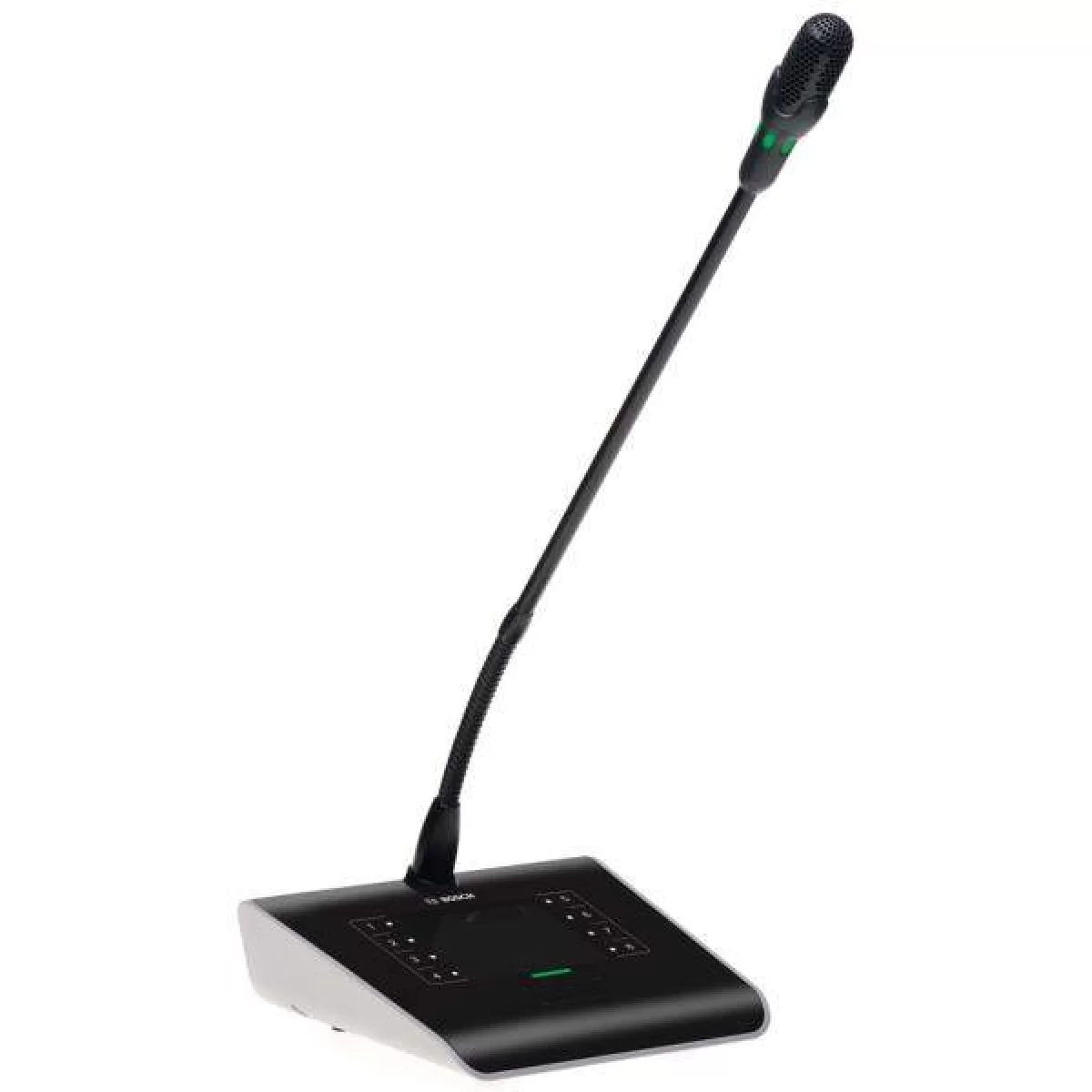 На поверхности устройства расположены 8 сенсорных кнопок для выбора зон перед вызовом, а также светодиоды с подсветкой белого цвета. Кнопка PTT представляет собой механический интерфейс для тактильной обратной связи с пользователем, оповещающей об активизации режима PTT. В дополнение к данной обратной связи есть светодиодная полоса над кнопкой PTT для индикации состояний: «красный» свет означает занятость зоны, «желтый» свет — ожидание предварительного звукового сигнала, а «зеленый» свет означает, что микрофон включен и активен. Светодиодные индикаторы скрыты в микрофонной ножке, и светодиодная полоса над кнопкой PTT однозначно сигнализирует пользователю о том, что микрофон включен и активен.