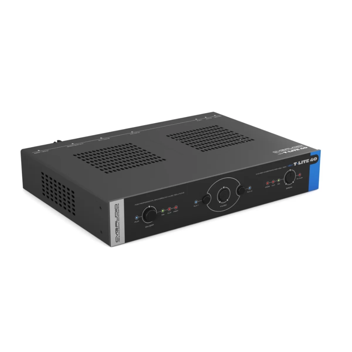 CVGAUDIO NEXT T-lite 40 – Современный миниатюрный микшер-усилитель для качественных 100V систем фонового звука и оповещения. Усилитель работает в D-классе, мощность — 40W/100V.