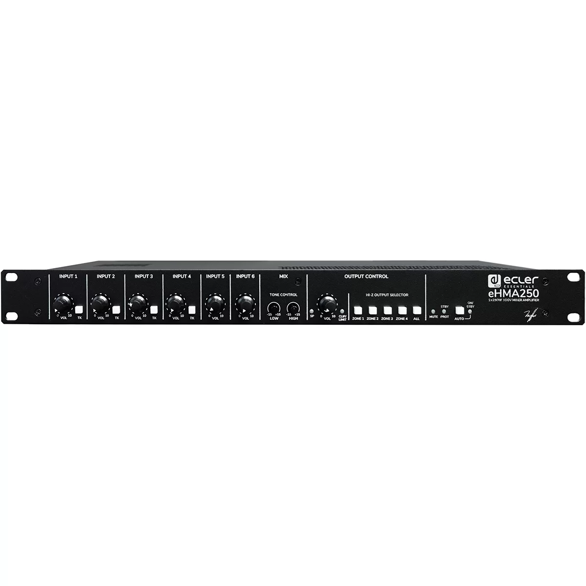 EclerEcler eHMA250 – Усилитель мощности на 4 зоны 250 Вт для трансляционной линии 50/70/100 В или с подключением по 4/8 Ом.