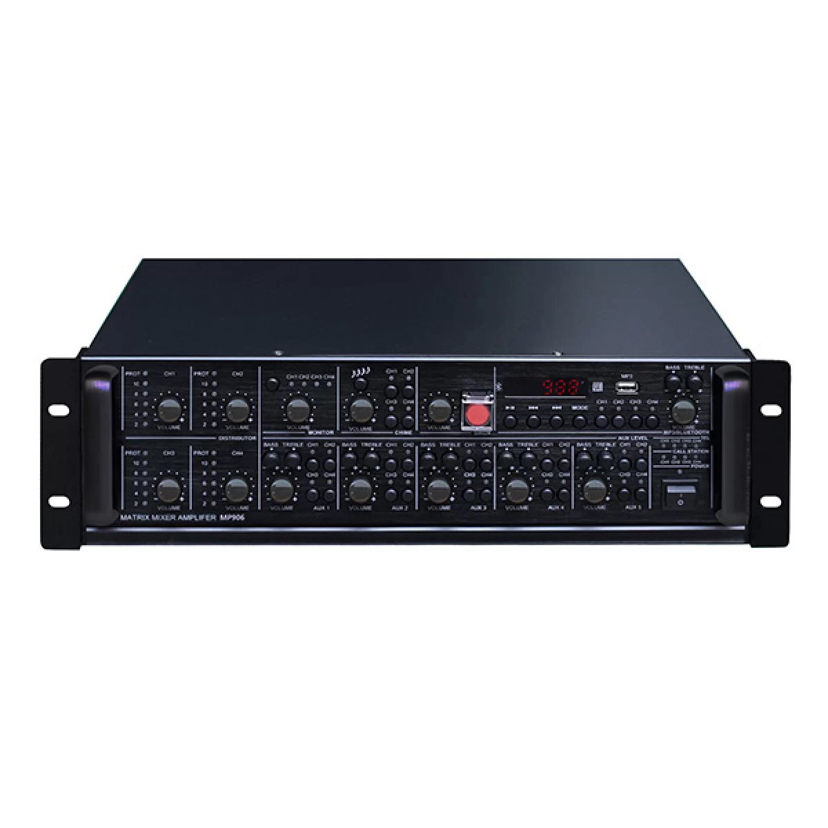 Трансляционный матричный усилитель на 4 зоны профессиональный (не бытовой), с корпусом, предназначенным для установки в рэк, привлекательным внешним видом, благодаря алюминиевой передней панели, предназначен для использования в производственных помещениях, школах, больницах, магазинах и на других коммерческих объектах.