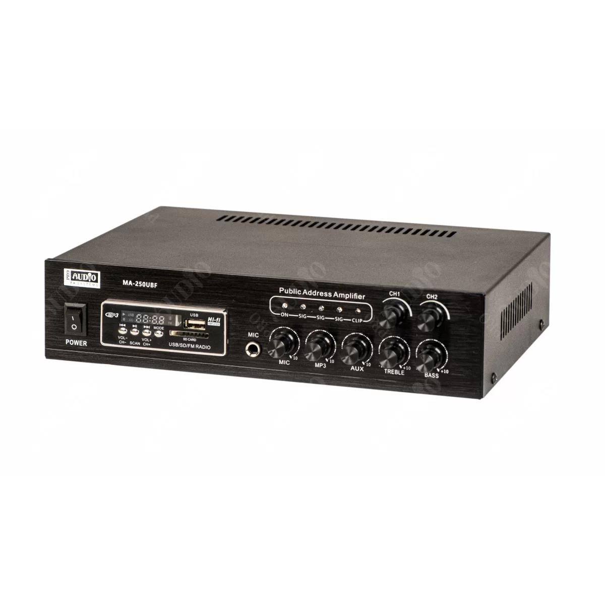 ProAudioProaudio MA-250UBF - Трансляционный микшер-усилитель, предназначенный для организации фонового вещания в небольших магазинах, павильонах.
