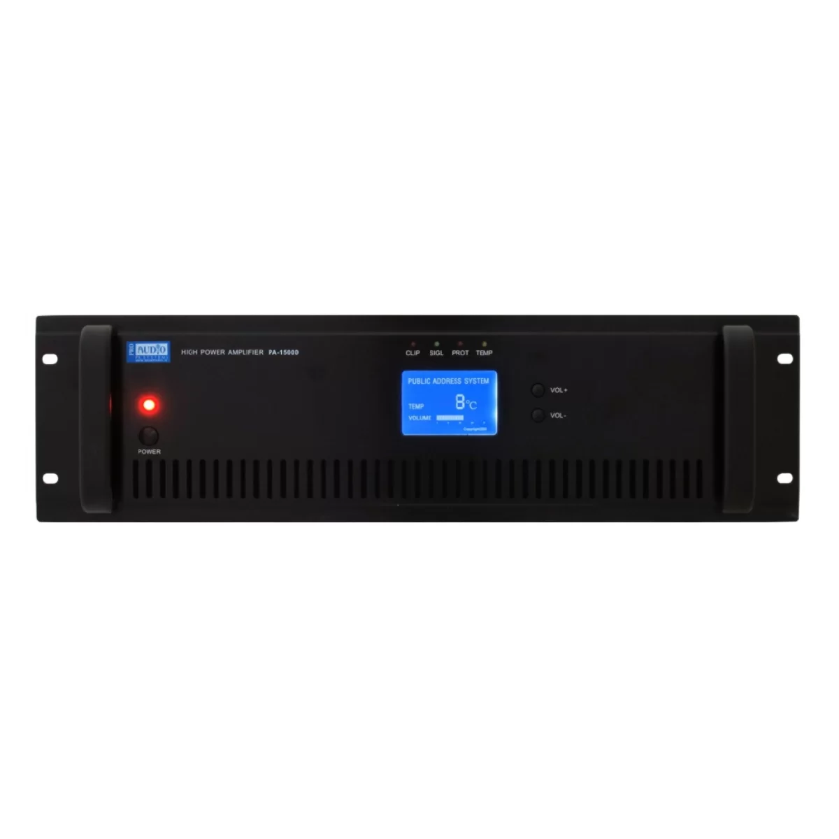Новые трансляционные усилители большой мощности ProAudio PA-1000D и ProAudio PA-1500D на 1 кВт и 1,5 кВт соответственно. Так же, как и младшие модели, они работают в трех режимах: 70, 100 В со стандартной акустикой на 4-16 Ом. Снабжены защитой от короткого замыкания на выходе, перегрева, перегрузки, а также системой «мягкого старта». Также усилители снабжены LCD дисплеем, отображающим температуру внутри корпуса и уровень громкости.