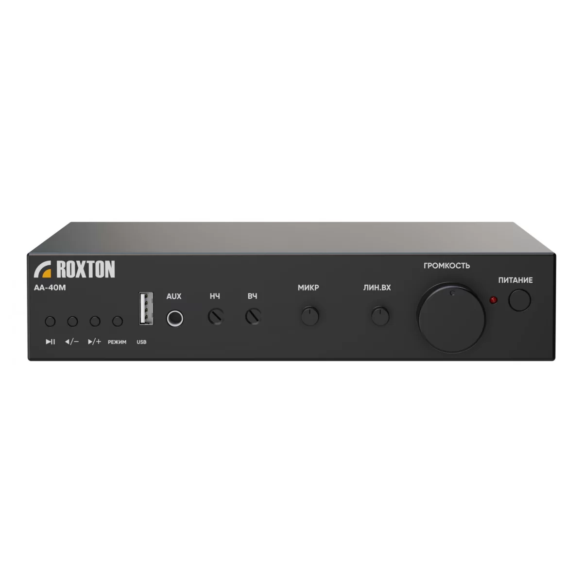 Настольный трансляционный усилитель ROXTON AA-40M мощностью 40 Вт, предназначен для создания небольших систем трансляции и озвучивания с суммарной мощностью подключаемой акустики не более 40 Ватт.