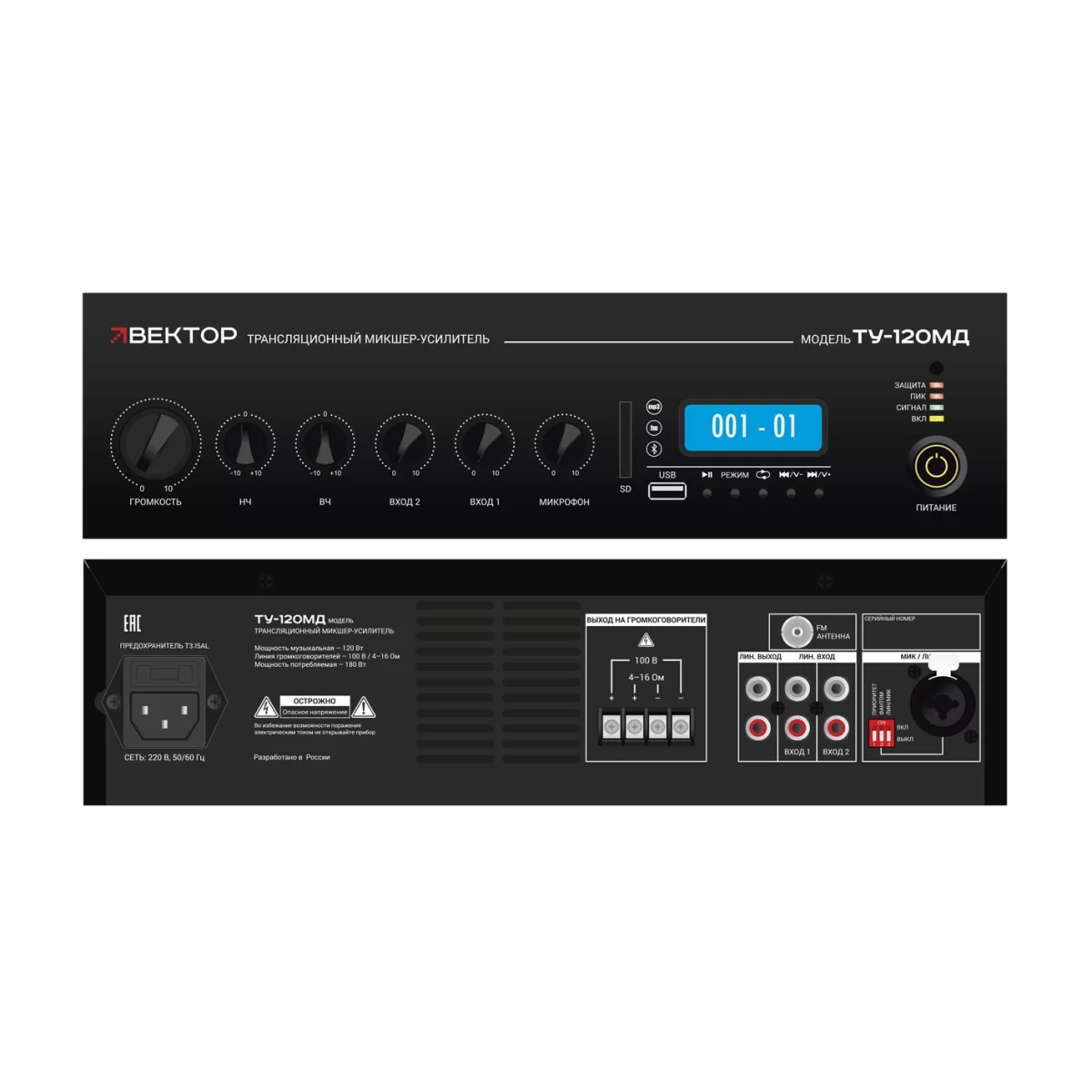 ВЕКТОР ТУ-120МД Трансляционный микшер-усилитель, 120 Вт., MP3, FM, Bluetooth