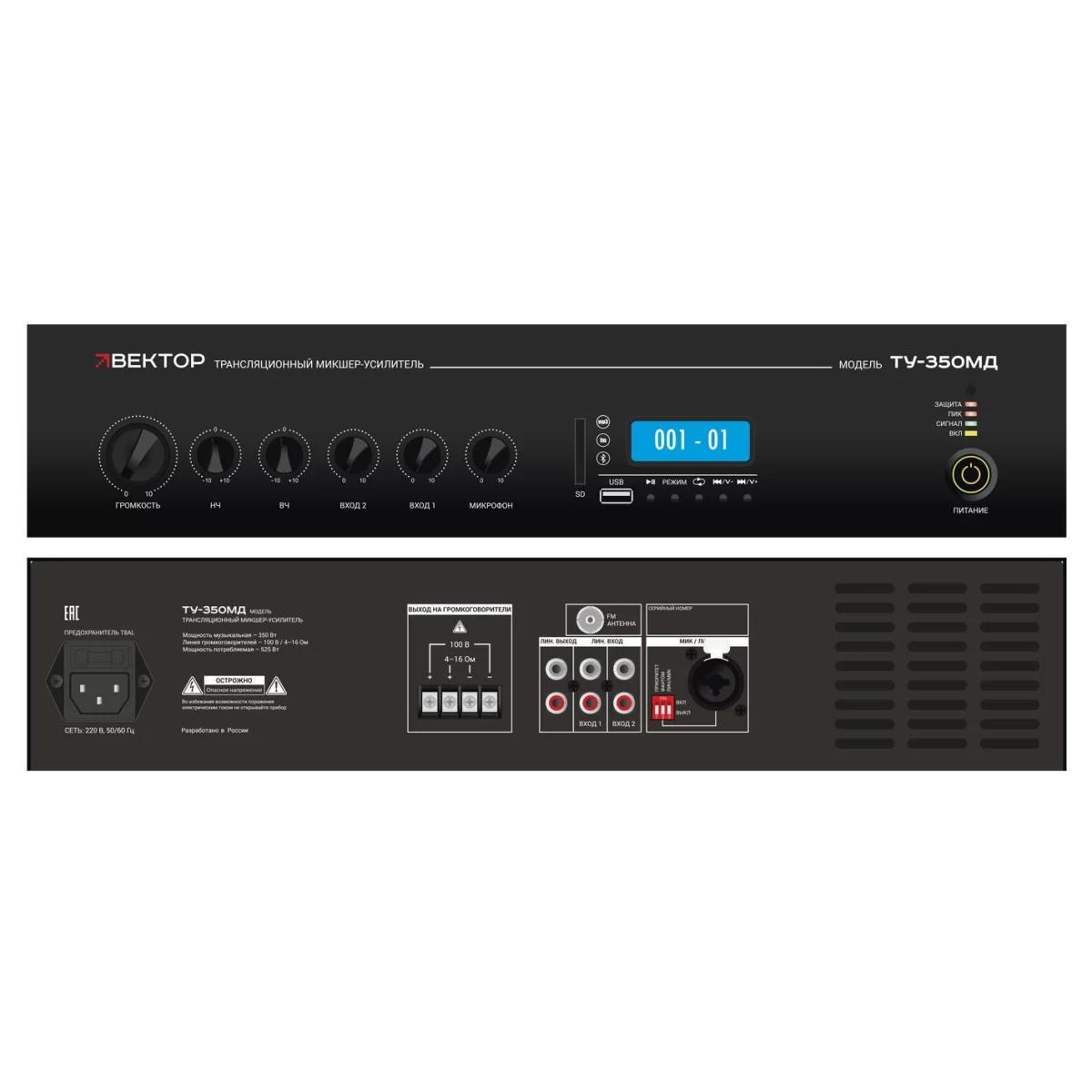 ВЕКТОР ТУ-350МД - Это комбинированный трансляционный микшер-усилитель класса D, который предназначен для построения небольших систем фонового музыкального вещания и речевой трансляции.